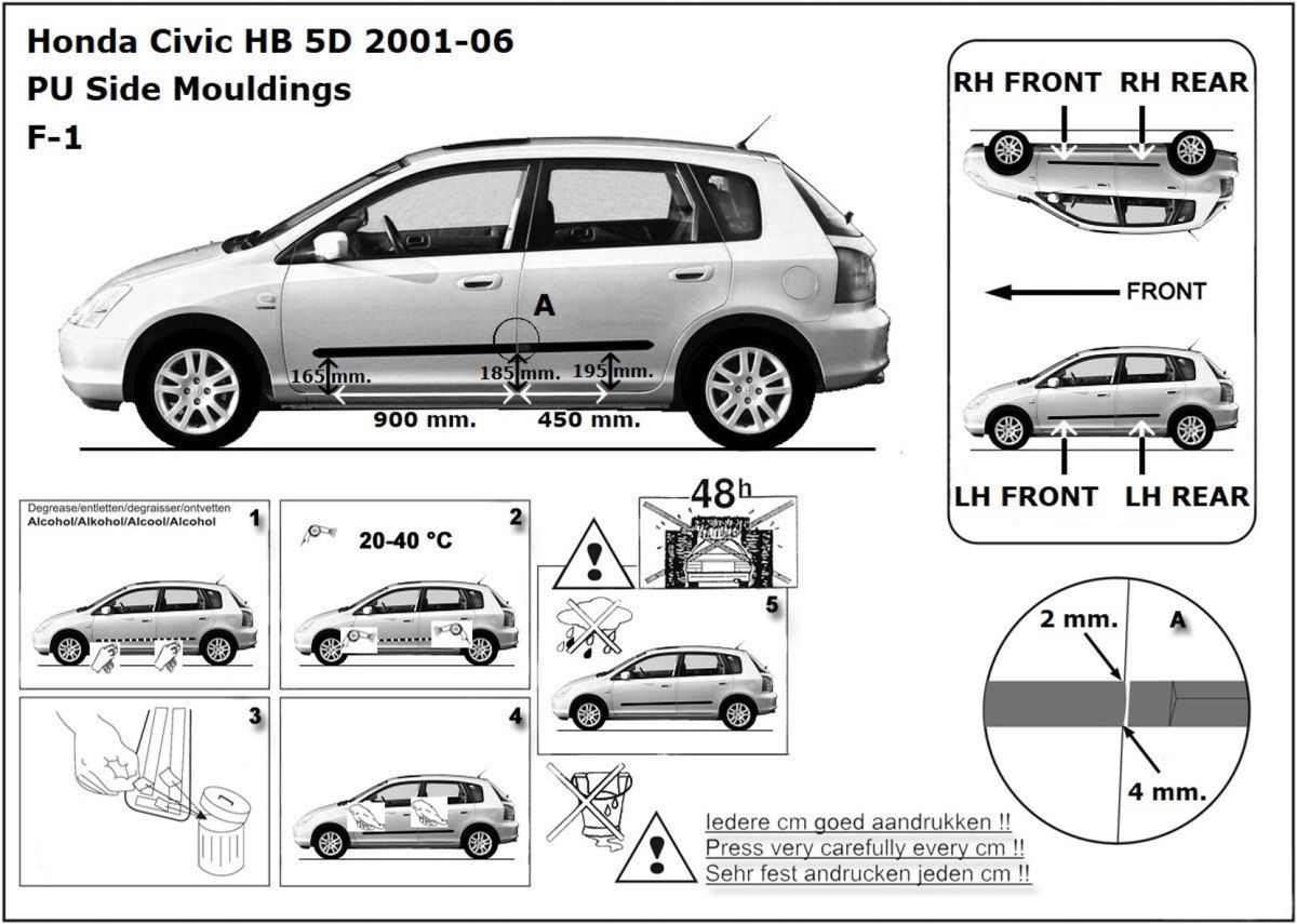 Listwy boczne na drzwi ochronne, Honda Civic VII, 2001-2005, 5 dwrz.