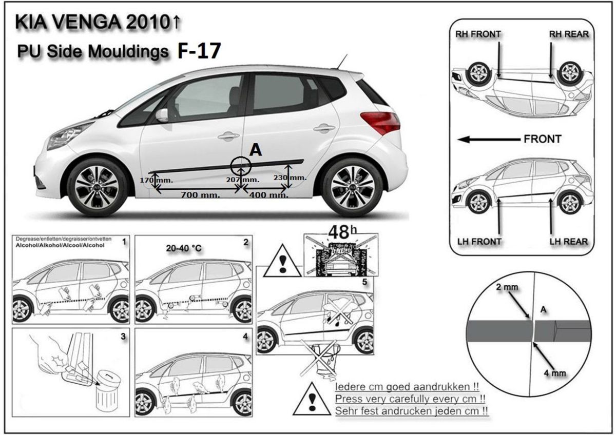 Listwy boczne na drzwi ochronne, Kia Venga, 2009-2019