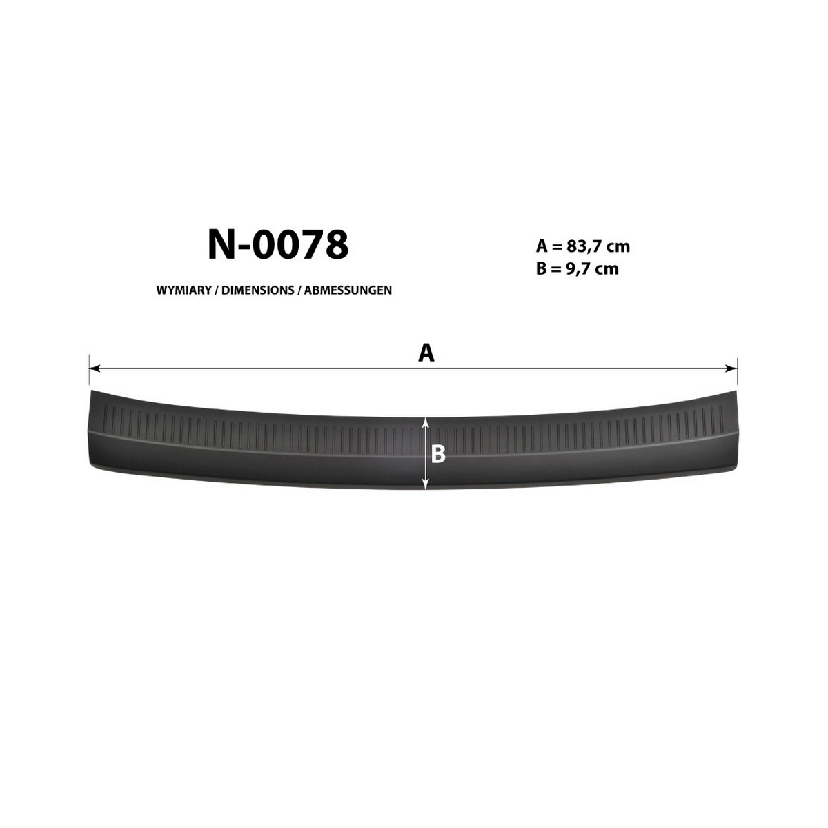 Listwa ochronna bagażnika jest produkowana z czarnego plastiku ABS charakteryzującego się wielką odpornością przeciw uszkodzeniom oraz otarciom. Prosty montaż listwy za pomocą taśmy obustronnej, która jest zawartością zestawu.