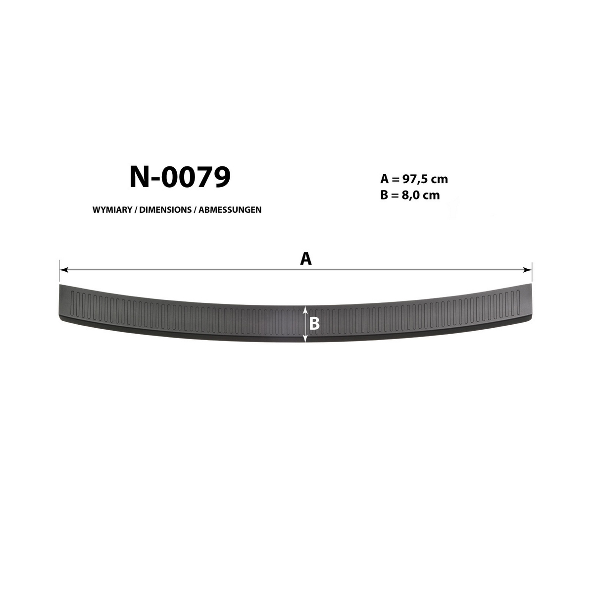 Listwa ochronna bagażnika jest produkowana z czarnego plastiku ABS charakteryzującego się wielką odpornością przeciw uszkodzeniom oraz otarciom. Prosty montaż listwy za pomocą taśmy obustronnej, która jest zawartością zestawu.