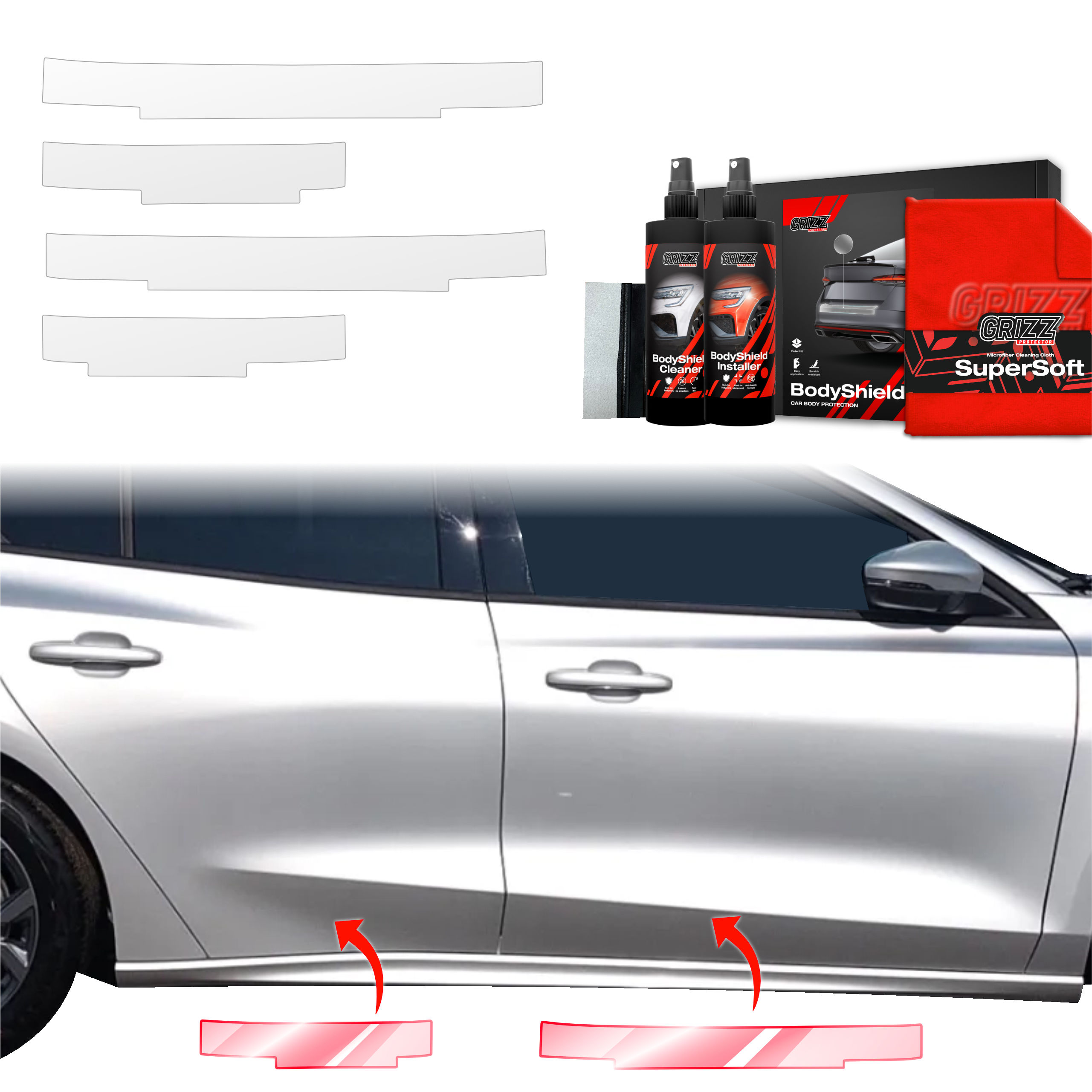 Grizz BodyShield to wysokiej jakości folia ochronna zaprojektowana w celu ochrony lakieru Twojego pojazdu przed uszkodzeniami mechanicznymi i niekorzystnymi warunkami atmosferycznymi. Dzięki wysokiej elastyczności i zdolności do samoregeneracji wypełnia drobne rysy, utrzymując powierzchnię pojazdu w idealnym stanie. Folia jest wycinana na miarę dla konkretnych modeli samochodów, co zapewnia łatwą instalację i perfekcyjne dopasowanie.