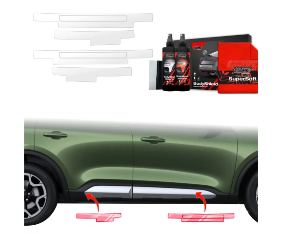 Grizz BodyShield to wysokiej jakości folia ochronna zaprojektowana w celu ochrony lakieru Twojego pojazdu przed uszkodzeniami mechanicznymi i niekorzystnymi warunkami atmosferycznymi. Dzięki wysokiej elastyczności i zdolności do samoregeneracji wypełnia drobne rysy, utrzymując powierzchnię pojazdu w idealnym stanie. Folia jest wycinana na miarę dla konkretnych modeli samochodów, co zapewnia łatwą instalację i perfekcyjne dopasowanie.