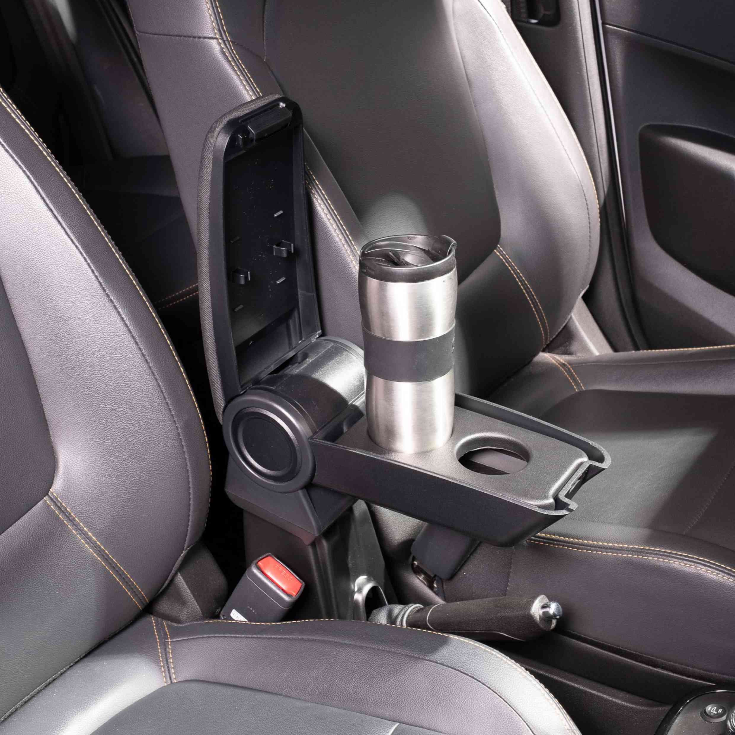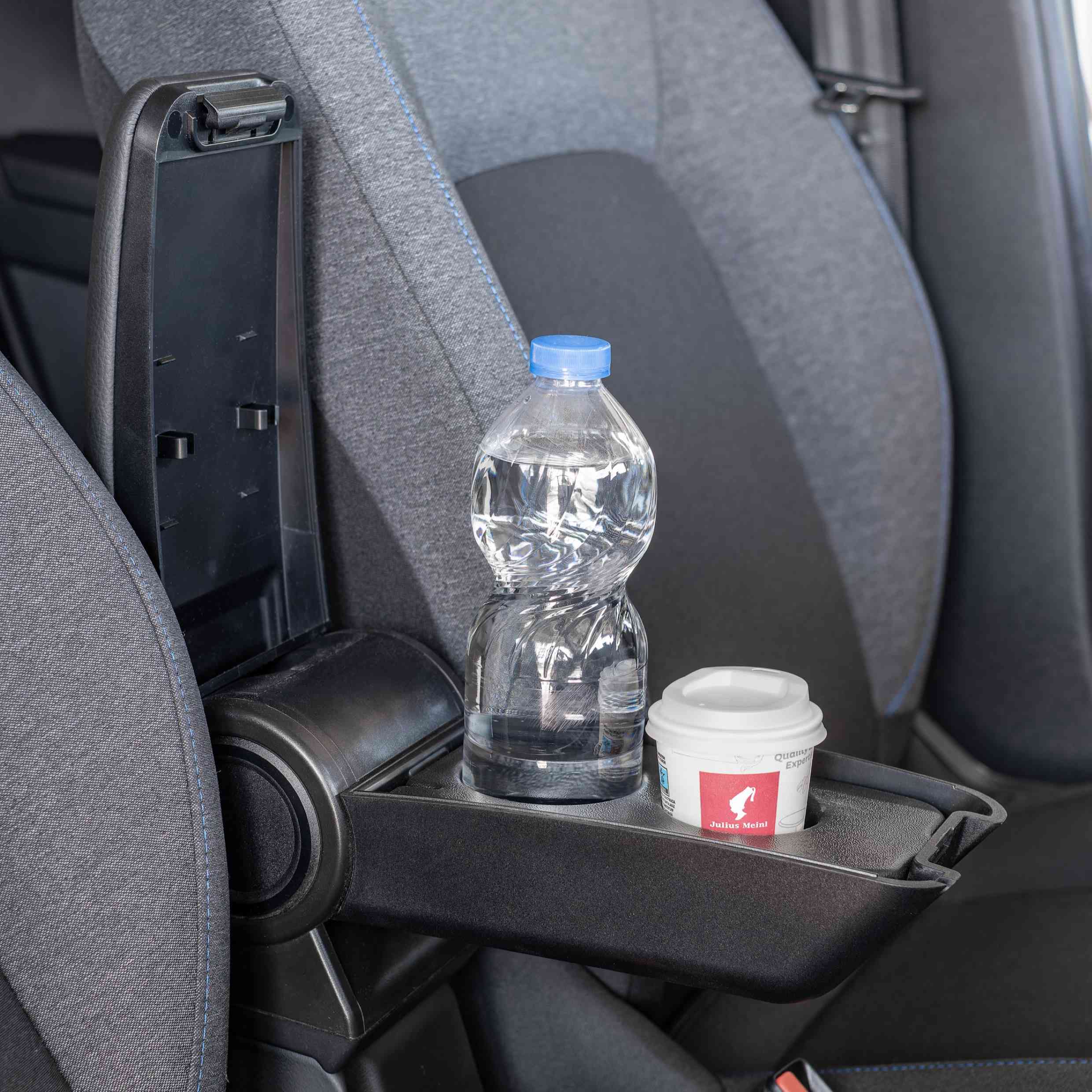 Dzięki przemyślanej konstrukcji zachowana jest pełna funkcjonalność podłokietnika – schowek oraz możliwość regulacji położenia.