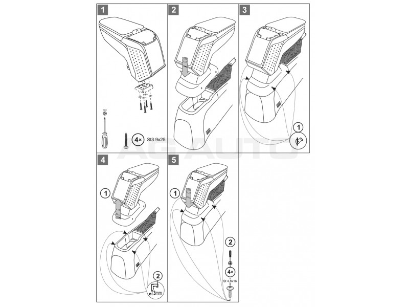 Montaż podłokietnika jest bardzo prosta i nie ma potrzeby odwiedzić serwis samochodowy. Instrukcja obsługi i wkręty do montażu znajdują się w zestawie. Część dolna podłokietnika – adapter, który przykręca się do tunelu środkowego, wykonany jest pod kształt konkretnego modelu auta, dlatego zawsze doskonale pasuje. Nie jest to uniwersalny adapter!