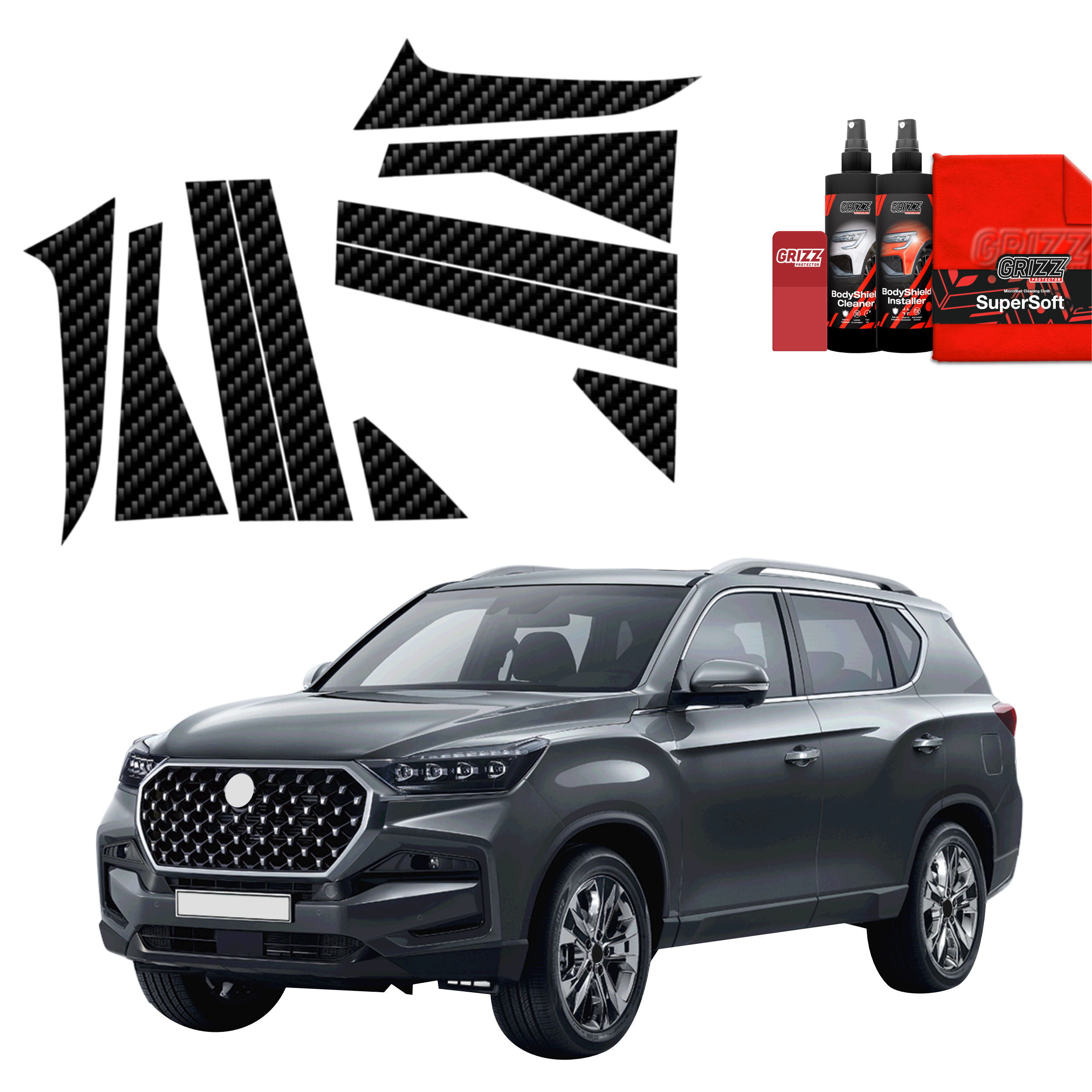 Grizz BodyShield carbon to wysoce odporna folia ochronna o carbonowym designie, przeznaczona do ochrony eksponowanych elementów karoserii, takich jak krawędź załadunkowa czy słupki pojazdu. Łączy funkcjonalną ochronę PPF z wyrazistym efektem wizualnym, który nadaje samochodowi bardziej dynamiczny i sportowy wygląd.