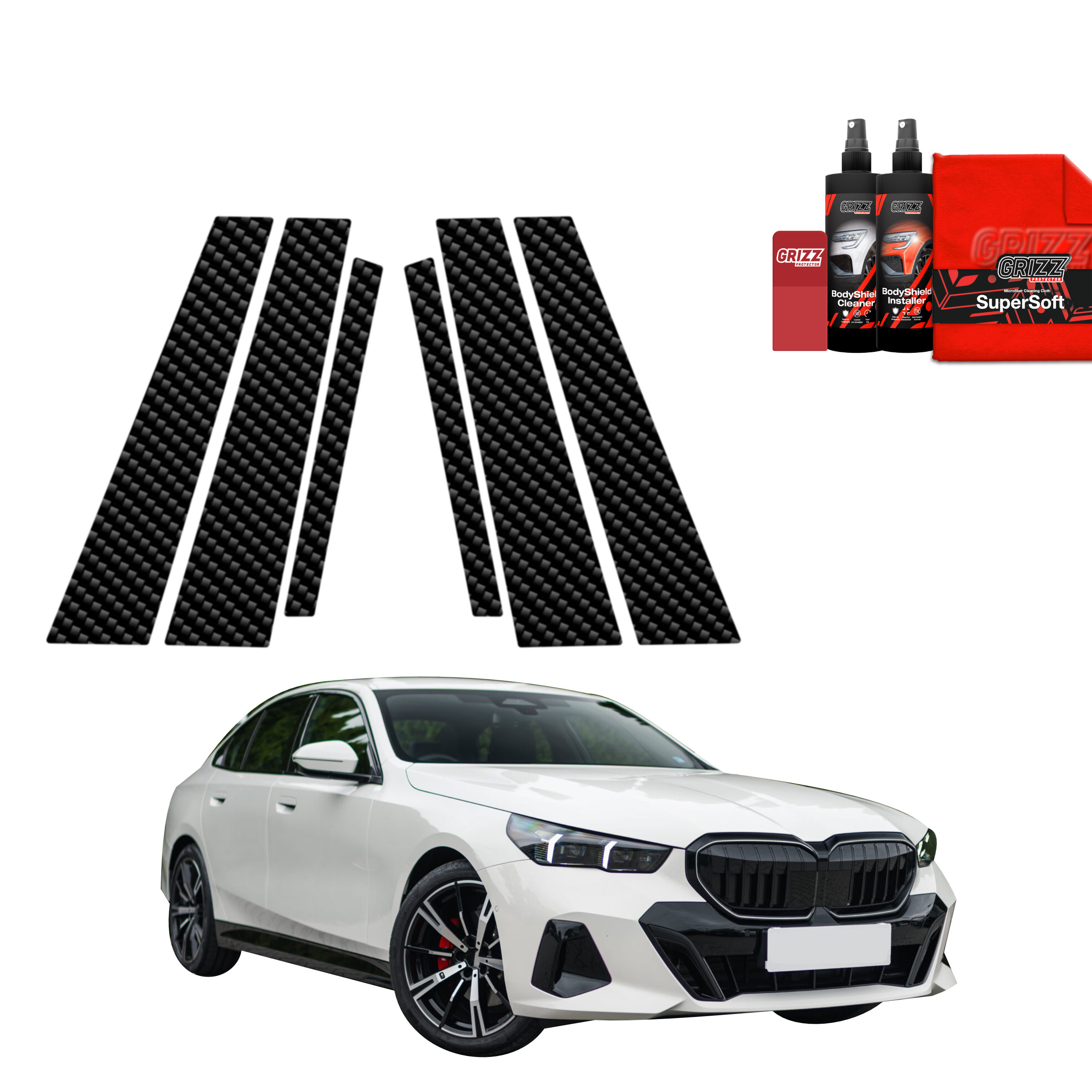 Carbonowa folia na słupki drzwi, BMW 5, G61, 2024- , Combi, Touring