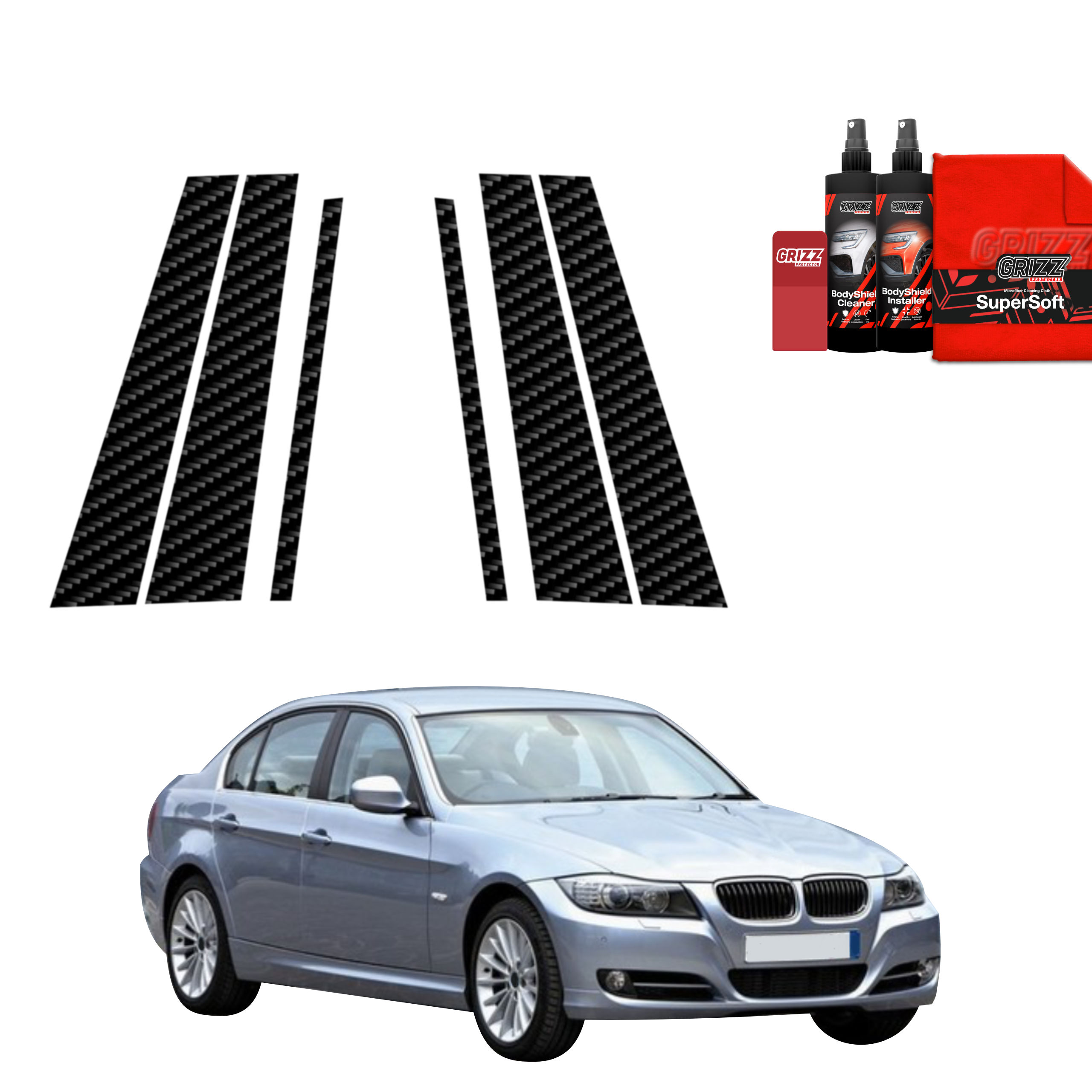 Carbonowa folia na słupki drzwi, BMW 3, E90, 2008-2013, Sedan
