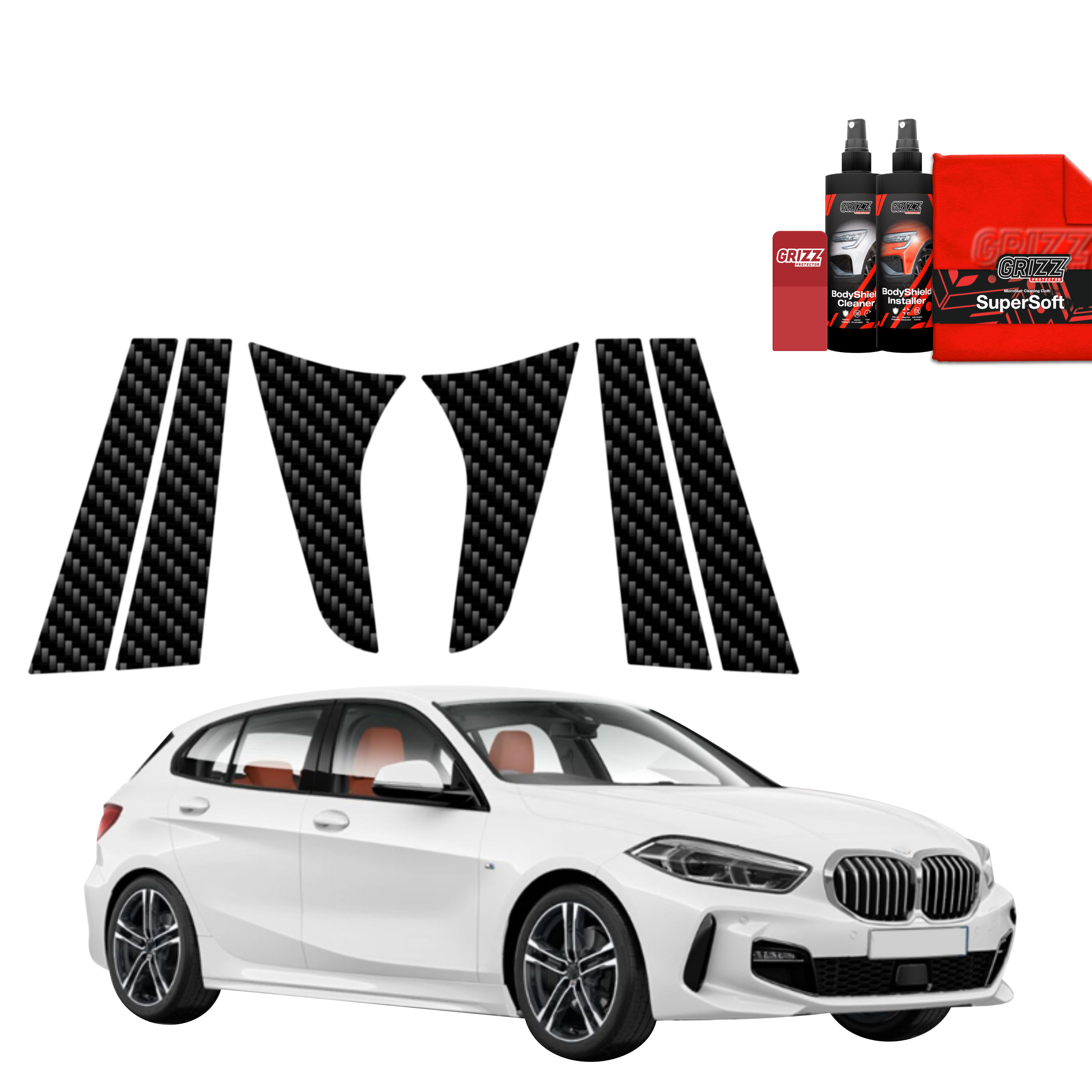 Carbonowa folia na słupki drzwi, BMW 1, F40, 2019-2024