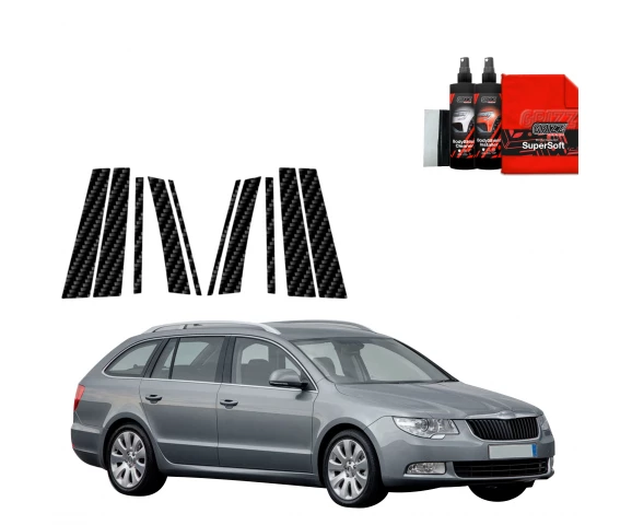Carbonowa folia na słupki drzwi, Škoda Superb II, 2008-2013, Combi