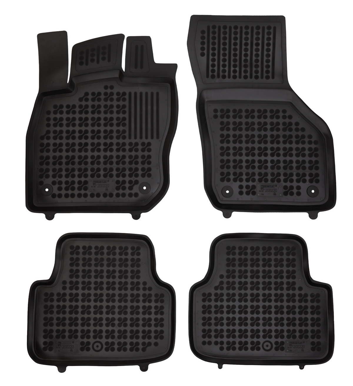 Przednie dywaniki są nawet wyposażone w miejsca na fabryczne stopery, które są zawarte w pakiecie. Dzięki stoperom można dywanik przymocować do podłogi samochodu i zapobiec suwaniu się dywanu. Dywaniki gumowe od producenta Rezaw-Plast mają nowoczesny design i produkowane są w Polsce. Wysokiej jakości materiał TPE nie wydziela nieprzyjemnego zapachu.