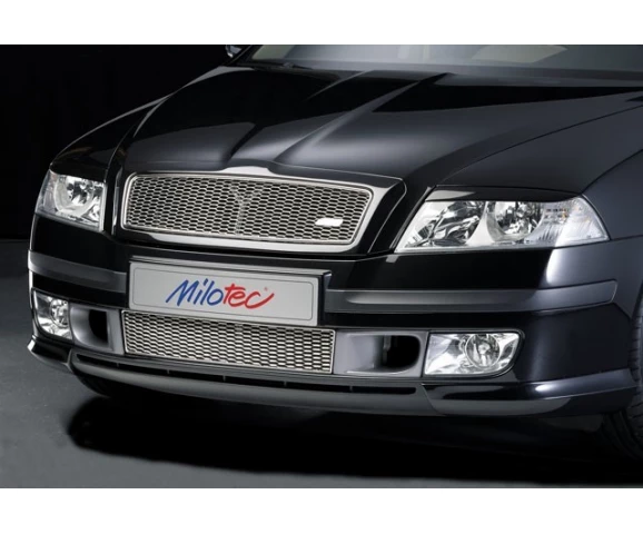 Kratka zderzaku s bocznym wydmuchem-ABS srebrna, kratka czarna, Škoda Octavia II , Milotec