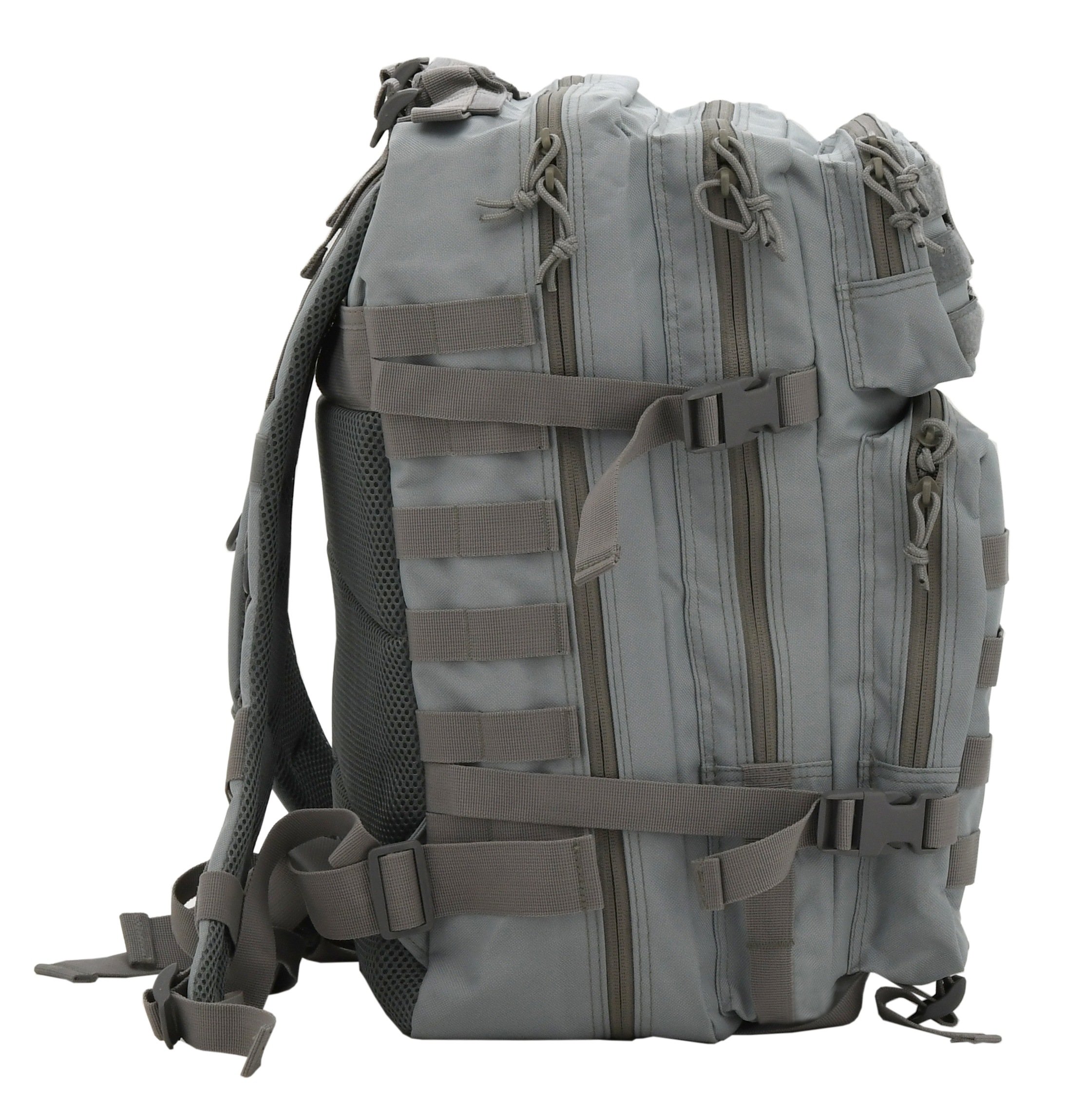 Z przodu i po bokach plecak ma system Molle do mocowania dodatkowego wyposażenia, a siatka Molle na górnej kieszeni ma rzep. Wszystkie kieszenie są wyposażone w wytrzymały, dwustronny zamek błyskawiczny. Jedna z wewnętrznych kieszeni jest zapinana na tradycyjny zamek.
