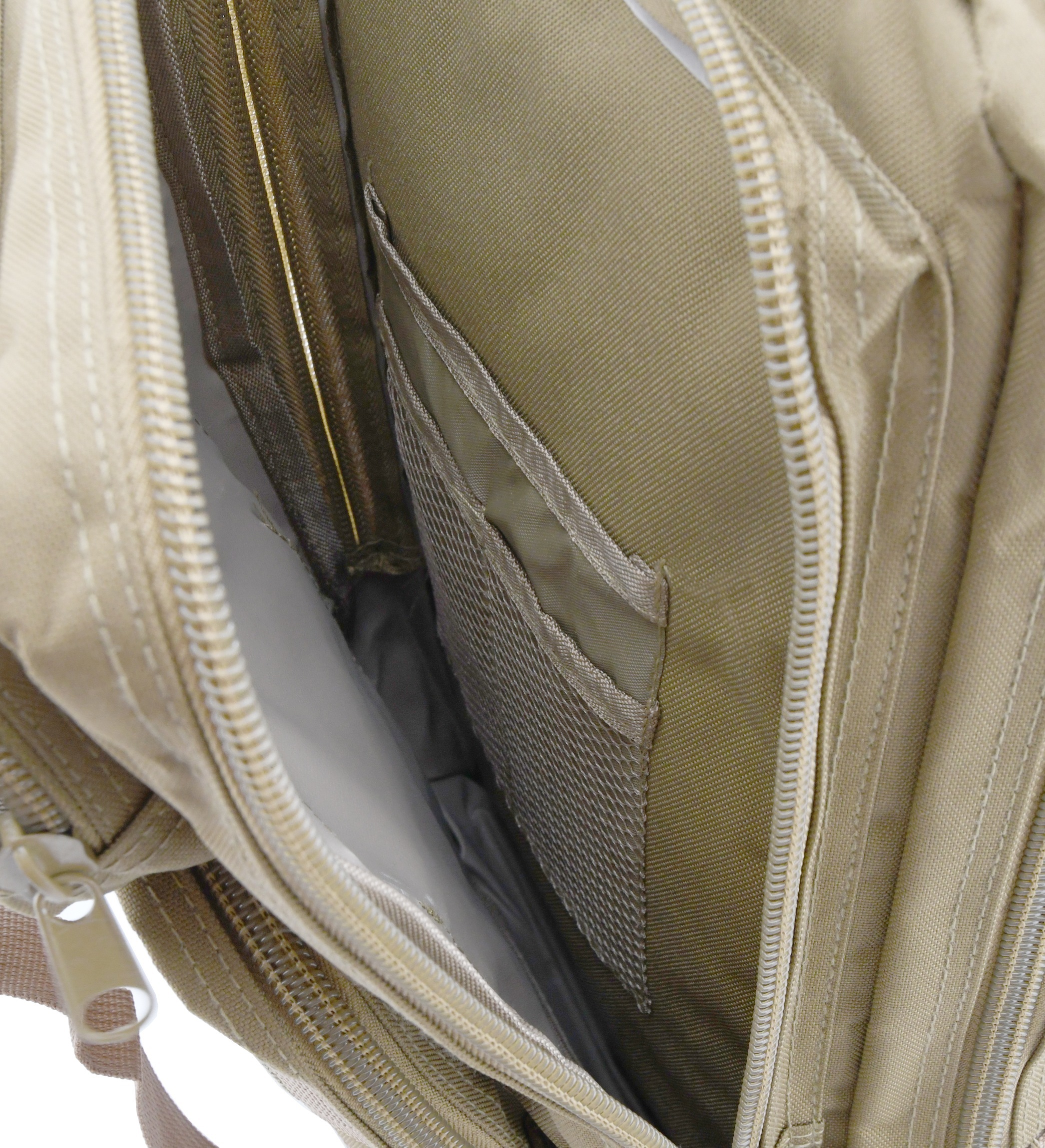 Na przedniej stronie oraz bokach znajduje się system Molle do mocowania dodatkowego wyposażenia. Kieszenie są wyposażone w solidne dwukierunkowe zamki błyskawiczne. Wewnętrzne kieszenie oraz siatkowa kieszeń mają uchwyty do bezpiecznego przechowywania drobnych przedmiotów. Jedna z wewnętrznych kieszeni ma klasyczny zamek błyskawiczny, a tylna wentylowana kieszeń jest zapinana na rzep.