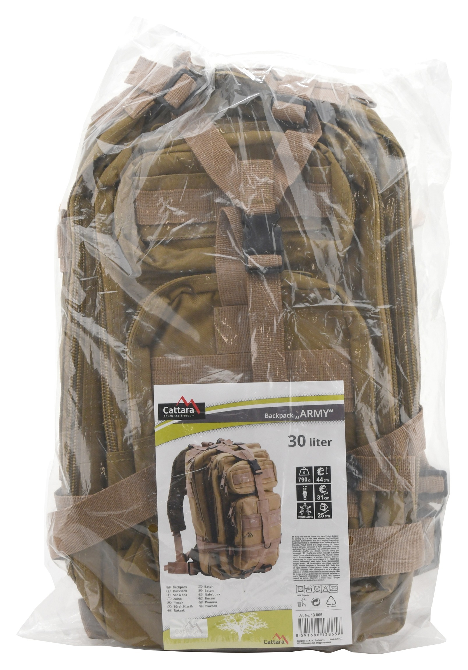 Plecak wykonany jest z 100% poliestru z warstwą PVC od wewnątrz, co zapewnia odporność na wodę. Plecak ma wymiary 31 x 44 x 25 cm i oferuje przestronną przestrzeń do 30L na przedmioty.