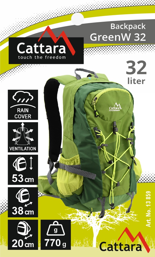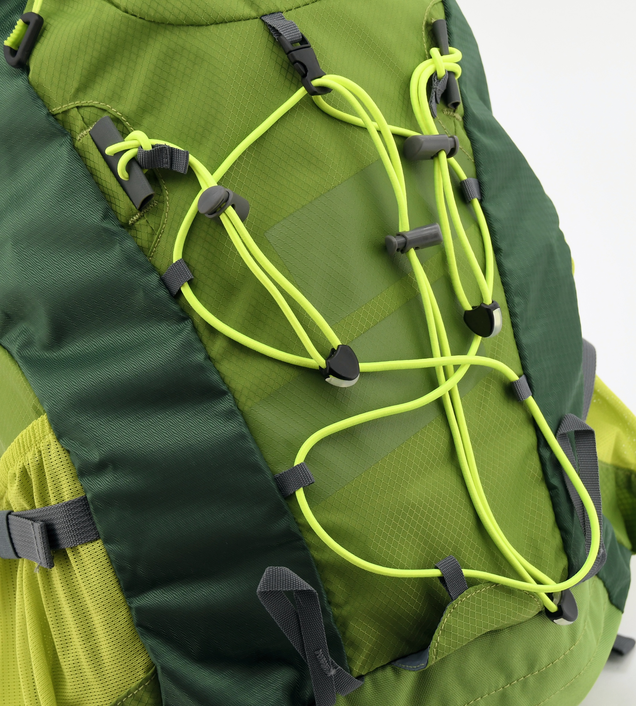 Górna część plecaka wyposażona jest w pelerynę, która zapewnia pełną ochronę przed deszczem. Dolna część ma pas z zapinanymi kieszeniami na drobne rzeczy. Pojemna główna kieszeń zawiera również wewnętrzną kieszeń. Przednia część ma małą kieszonkę na górze plecaka oraz system ściągania, który zapobiega przesuwaniu się materiału w środku plecaka, idealny także do przypięcia kasku rowerowego. Po bokach znajdują się dwie ściągane siatkowe kieszenie. Pas również wyposażony jest w zapinane kieszenie na zamek.