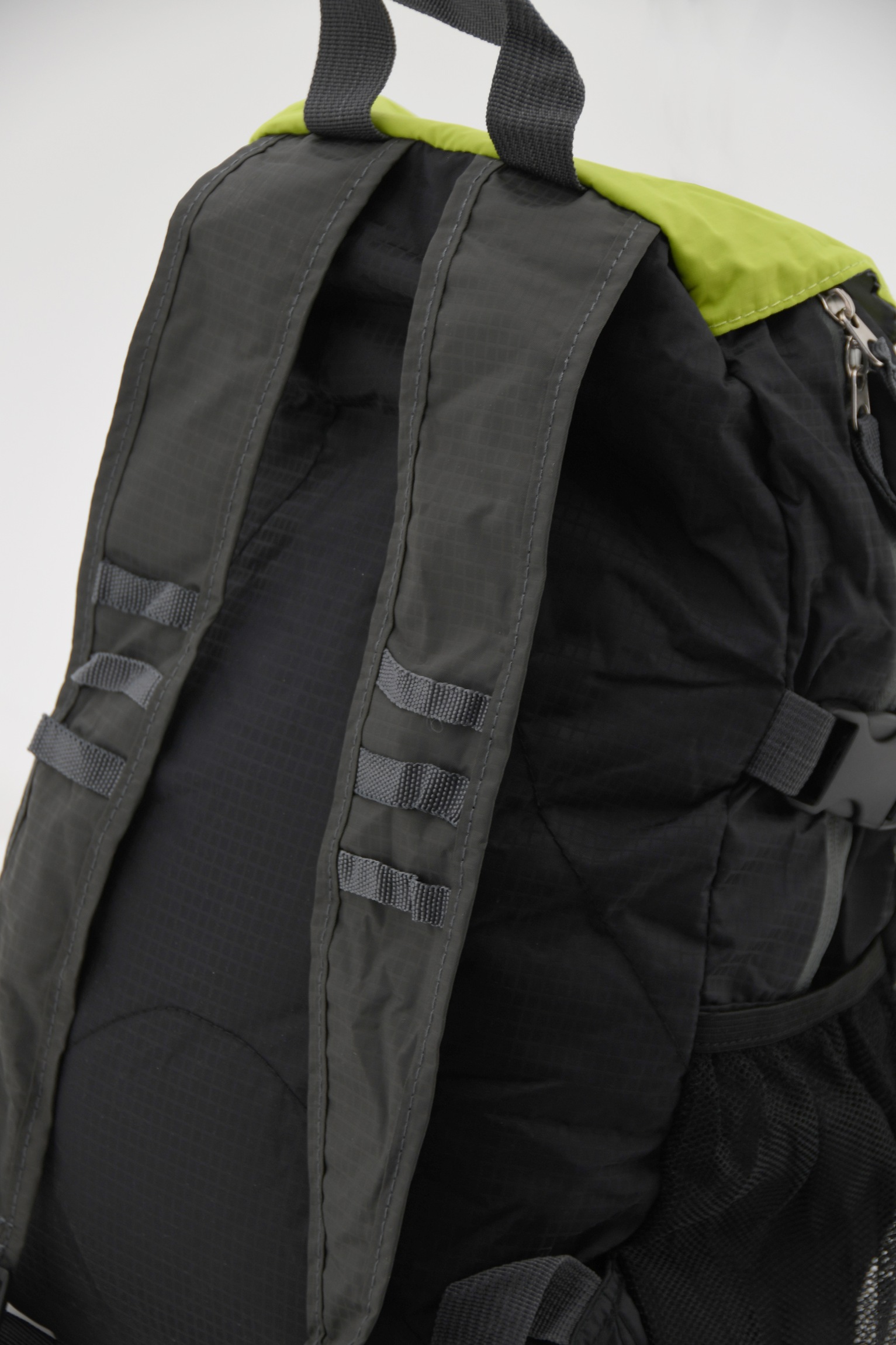 Plecak składa się z jednej głównej kieszeni oraz przedniej kieszeni zapinanej na zamek. Przednia strona i boki plecaka wyposażone są w siatkowe kieszenie, z których boczne mają gumowe wykończenie, a przednia jest zabezpieczona regulowanym paskiem.
