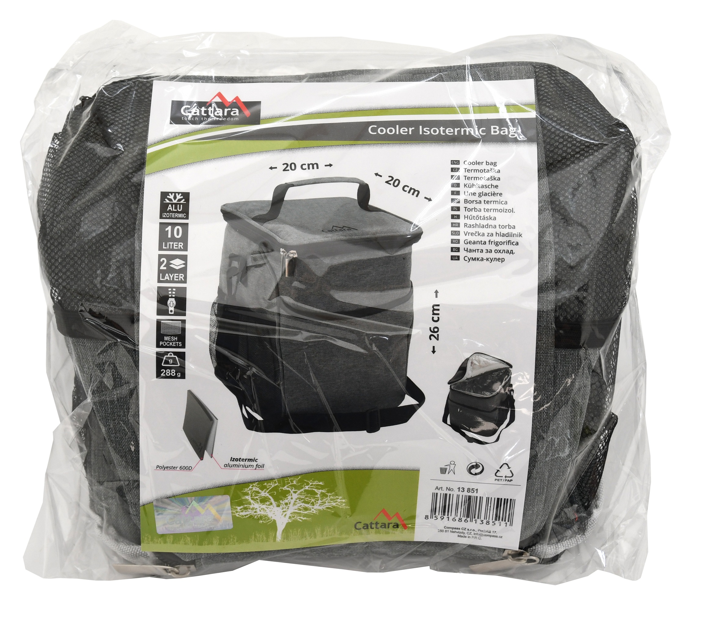 Torba termiczna wyposażona jest w termoizolacyjną folię oraz wysokiej jakości zamek błyskawiczny. Wewnętrzna przestrzeń torby jest łatwa do umycia i jednocześnie nieprzepuszczalna. Przechowywane w niej produkty pozostają schłodzone przez długi czas.
