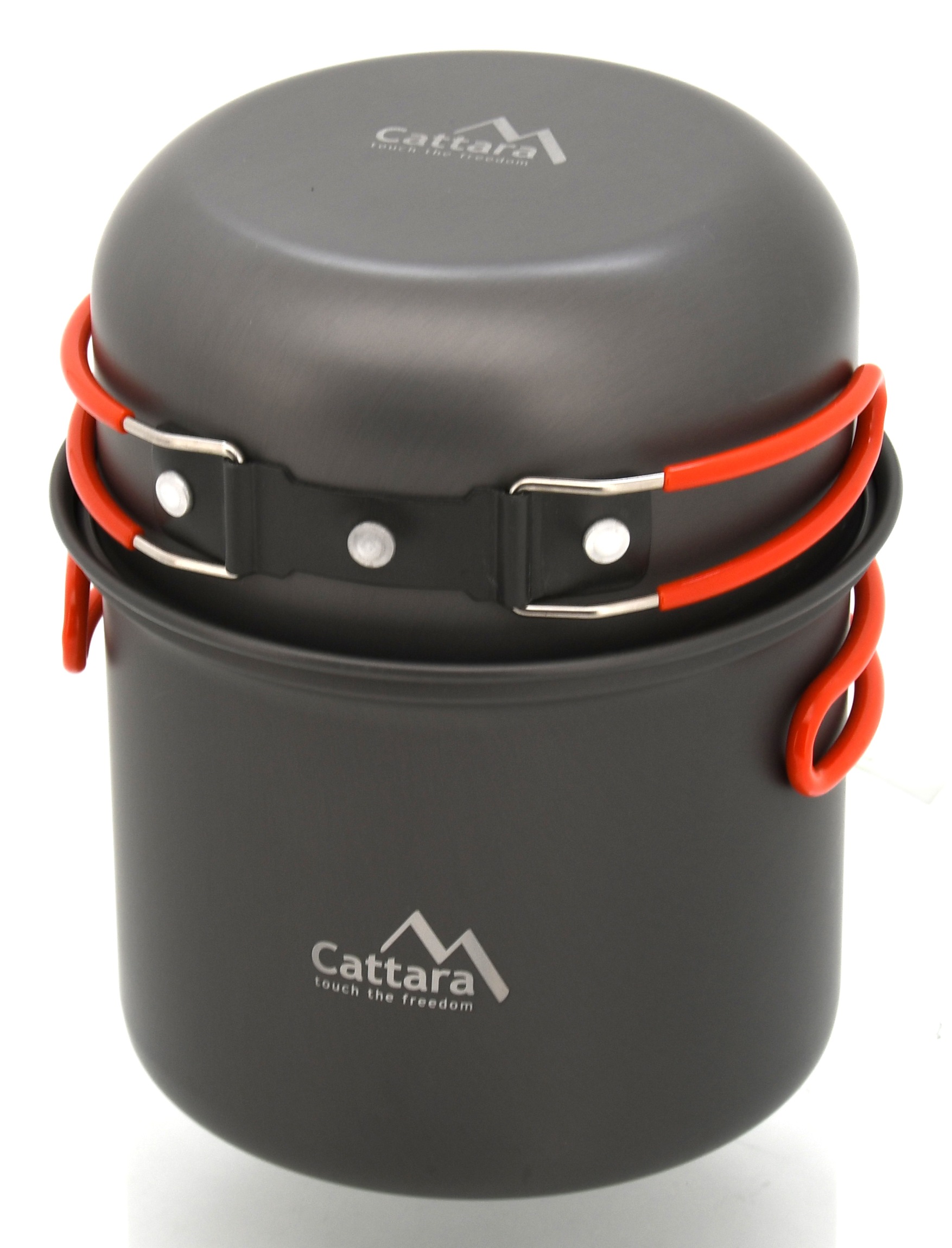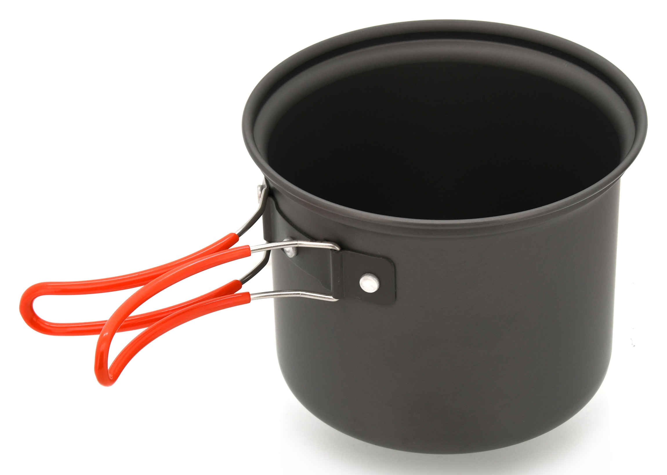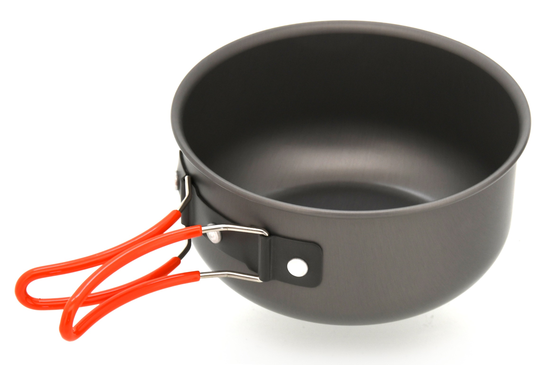 Zestaw naczyń outdoorowych w wykonaniu z anodowanego aluminium.