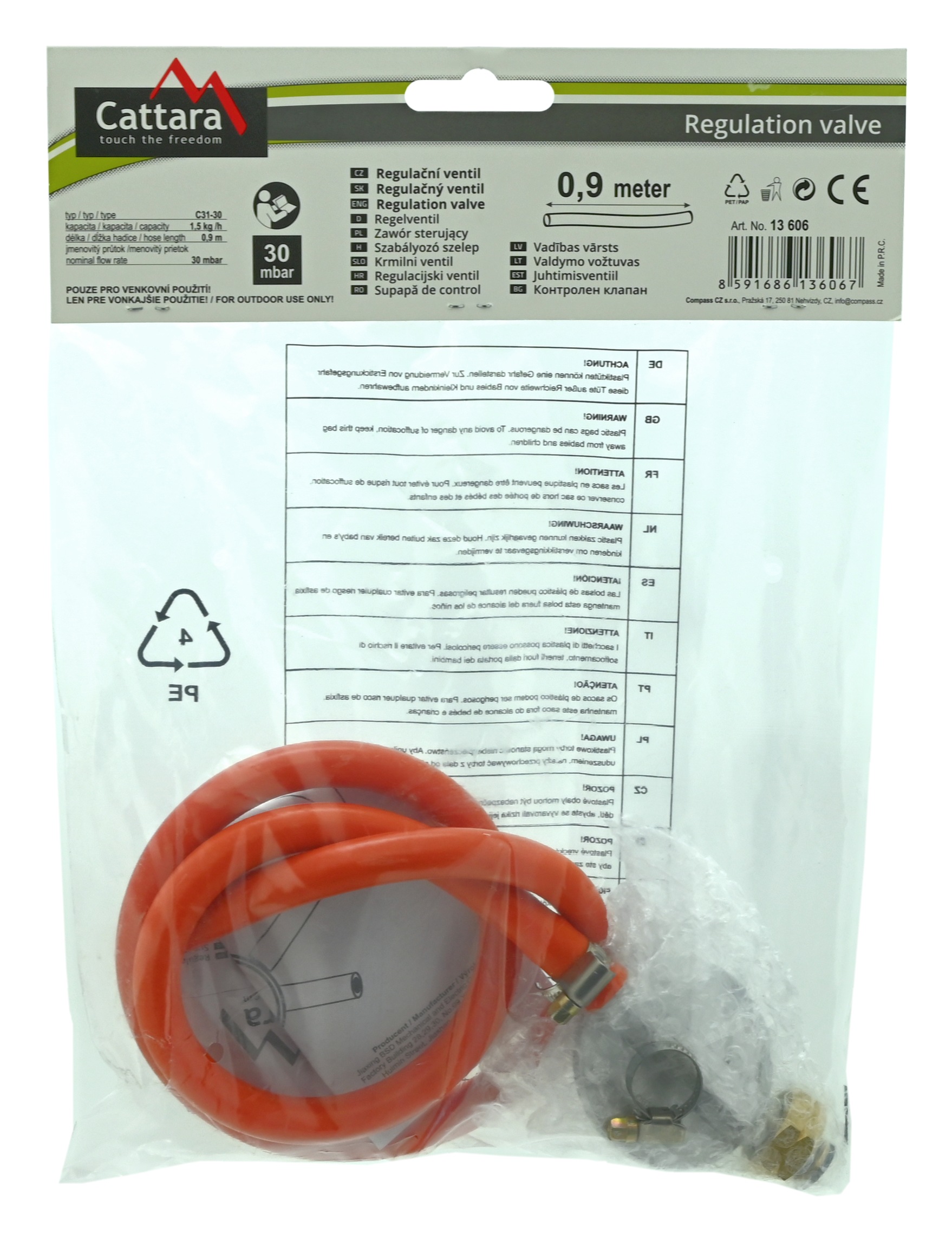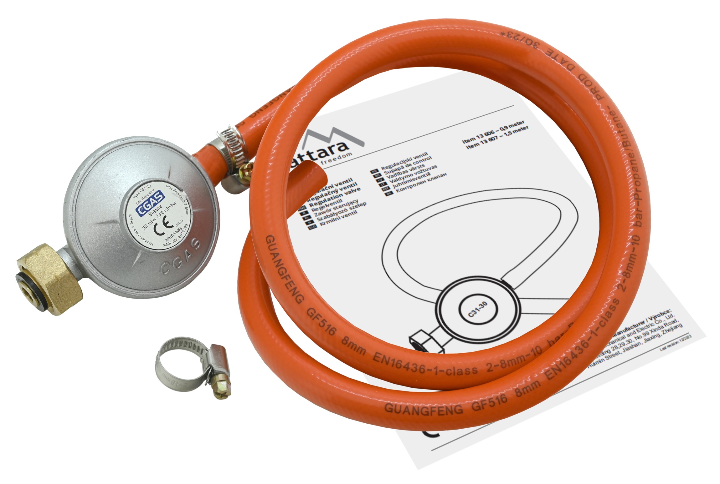 Regulator ciśnienia gazu 30 mbar EN16129 – zestaw z wężem 0,9 m