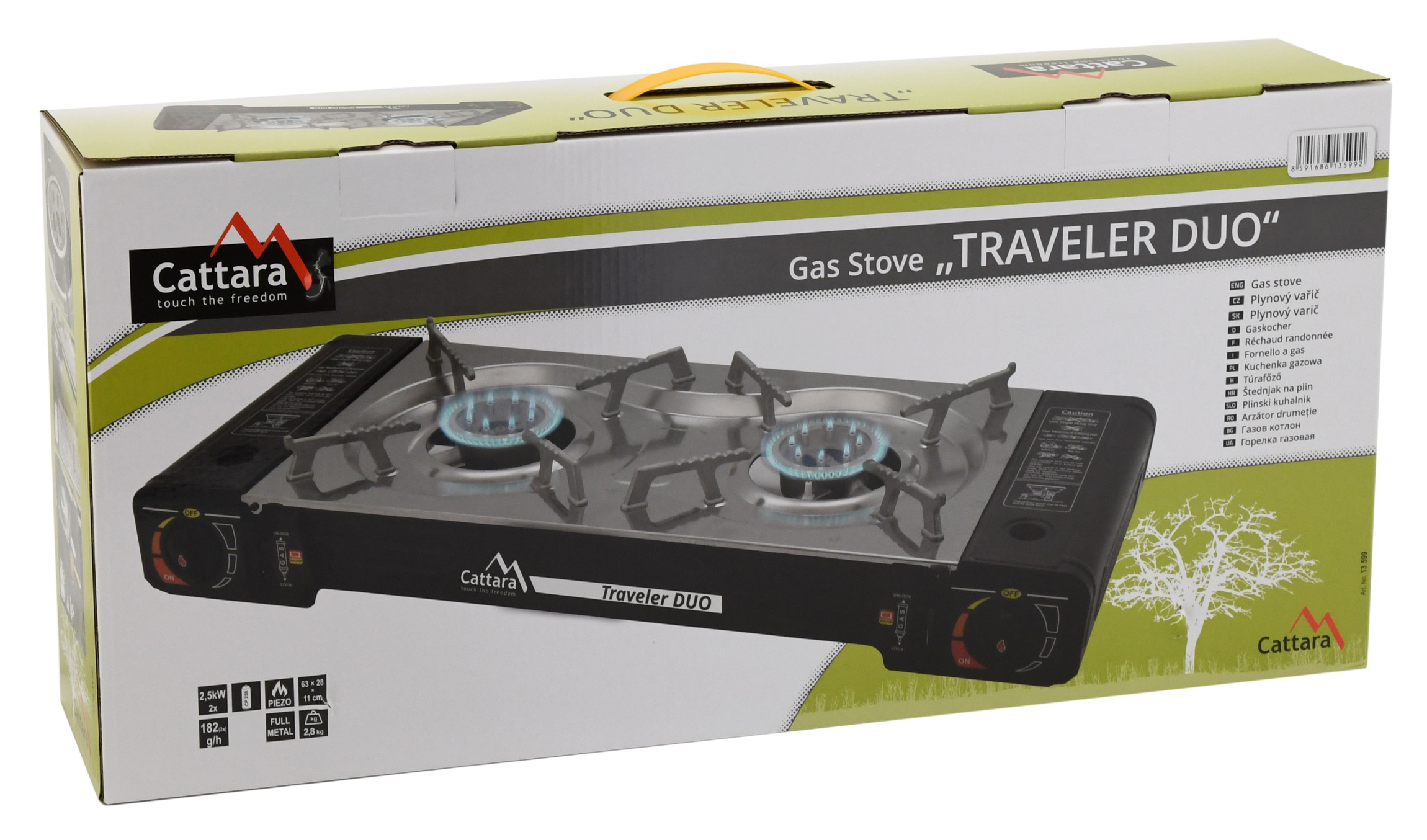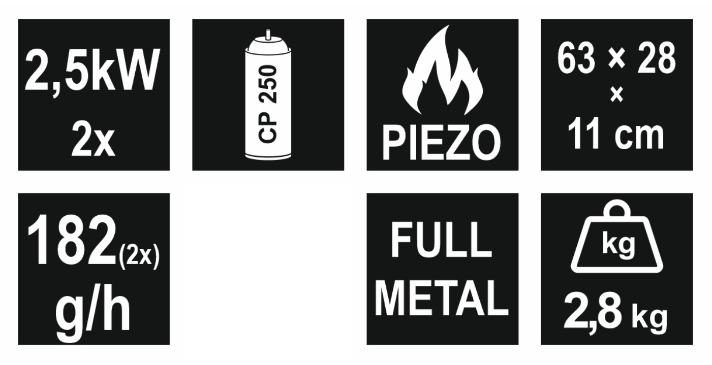 Kuchenka przeznaczona do użytku na świeżym powietrzu wyposażona jest w dwa miejsca na kartusze CP250 (220 g). Wszystkie podłączane gazy muszą spełniać wymagania normy ČSN EN 417.