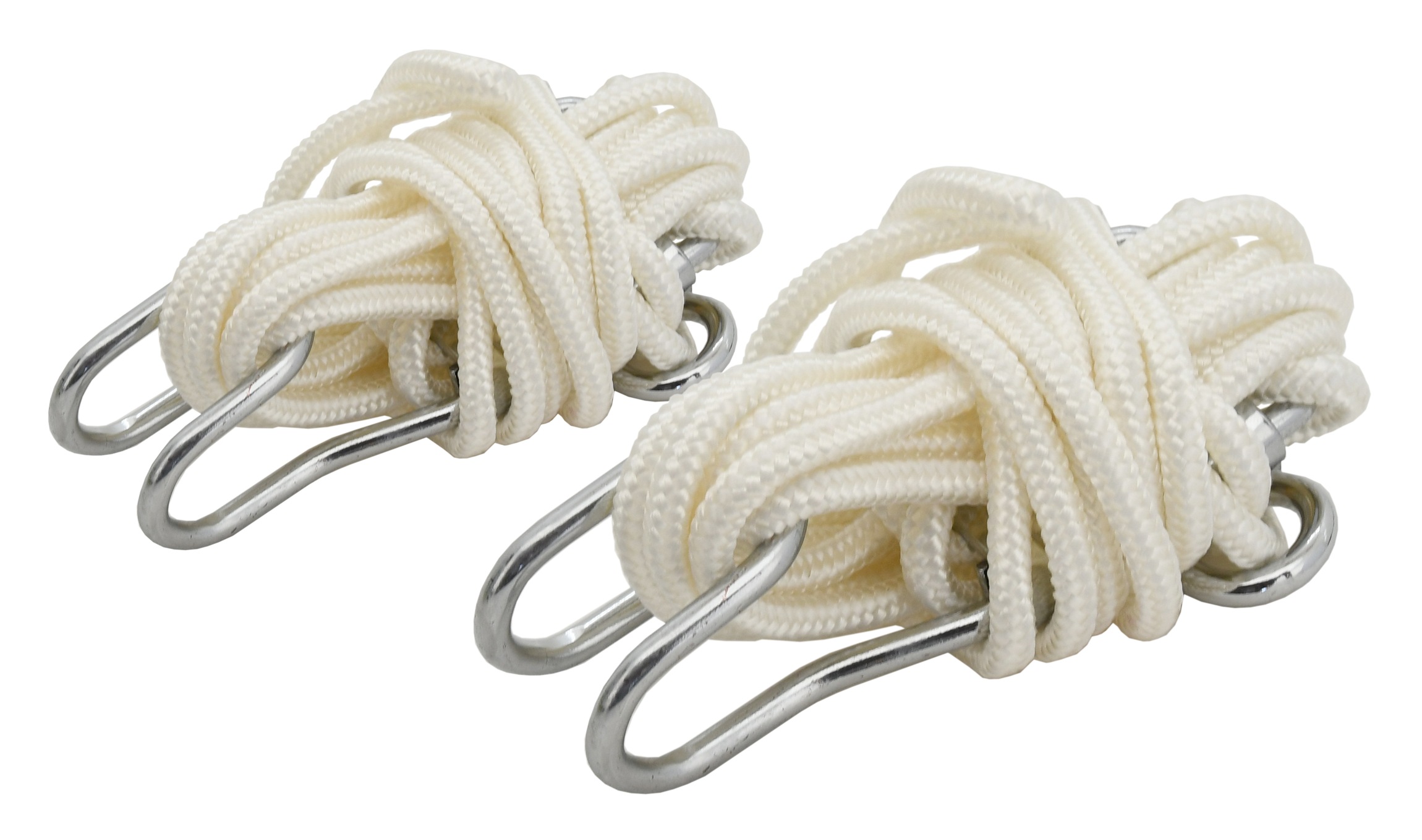 Zestaw zawiera parę metalowych haków z mocnymi linami.