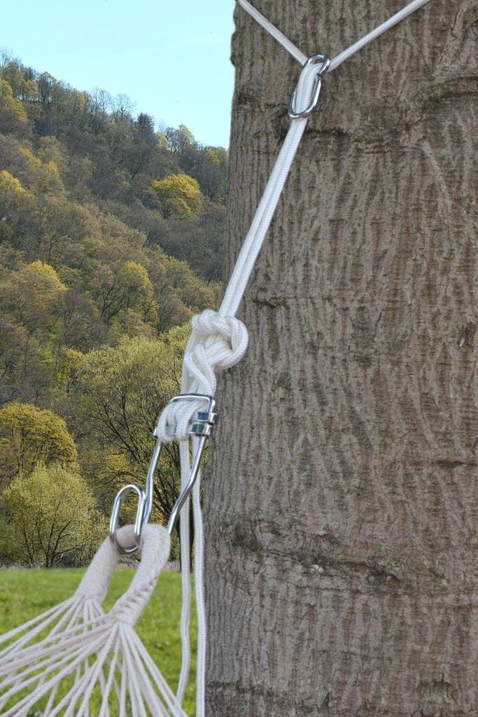Odpowiedni do użytku dla hamaków o maksymalnej nośności 150 kg.