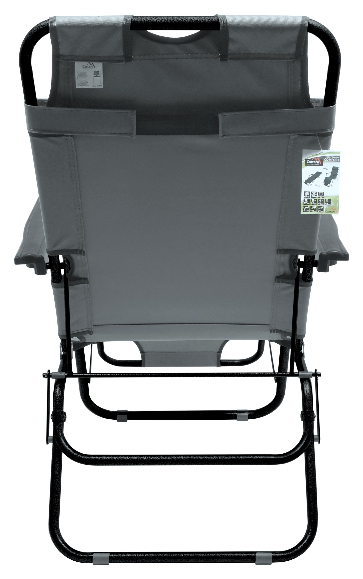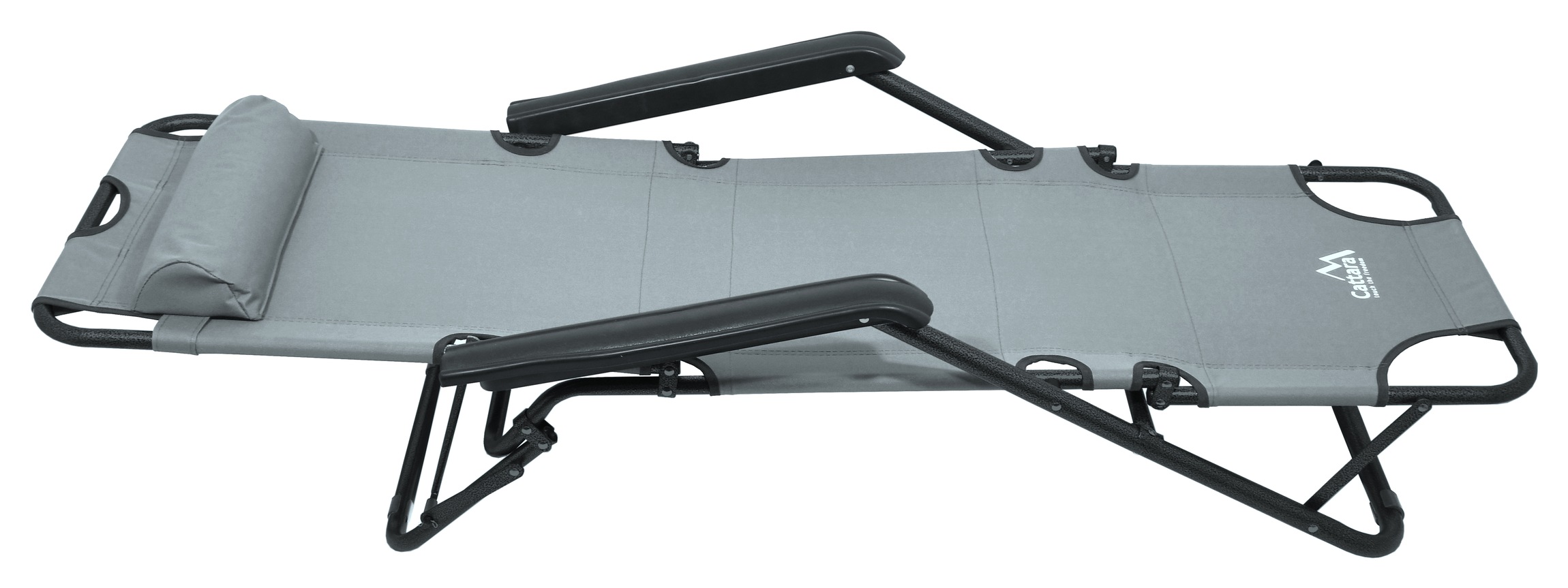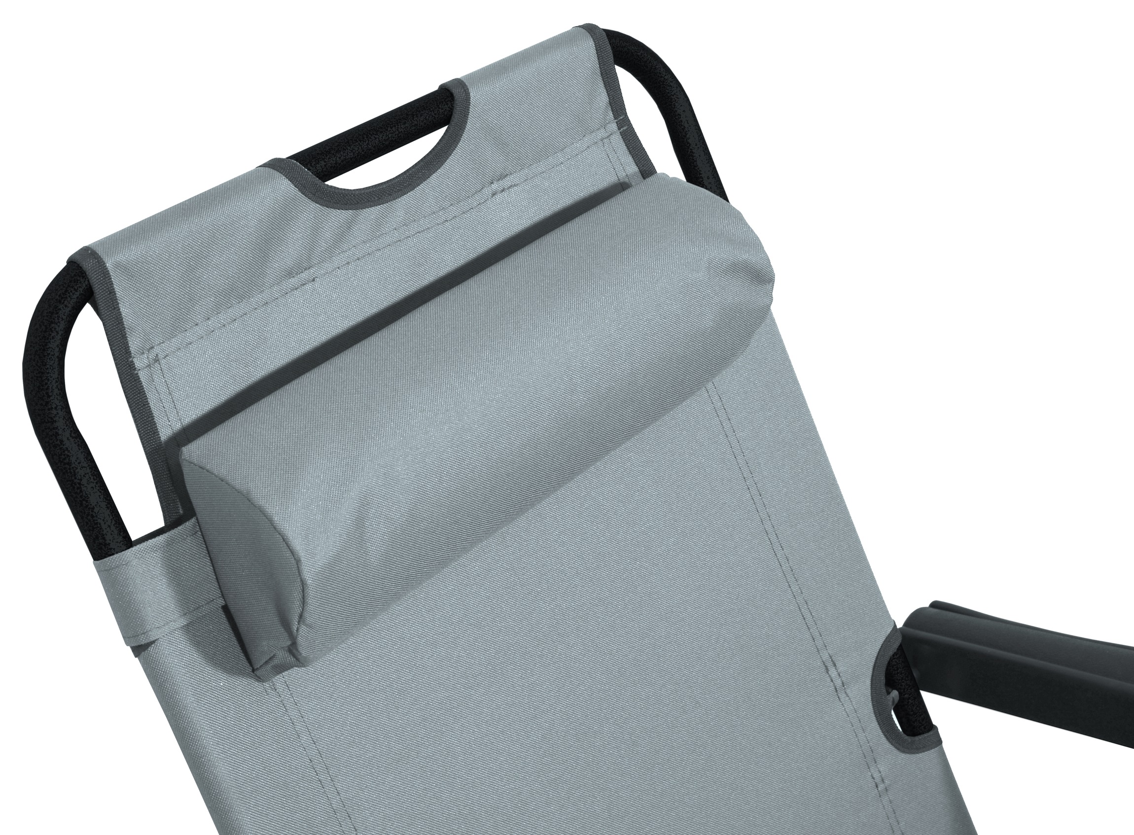 Leżak można używać w tradycyjny sposób lub złożyć go w formę krzesła wędkarskiego, które doceni każdy miłośnik aktywności na świeżym powietrzu. Leżak wyposażony jest w regulowany zagłówek i podłokietniki dla maksymalnego komfortu.