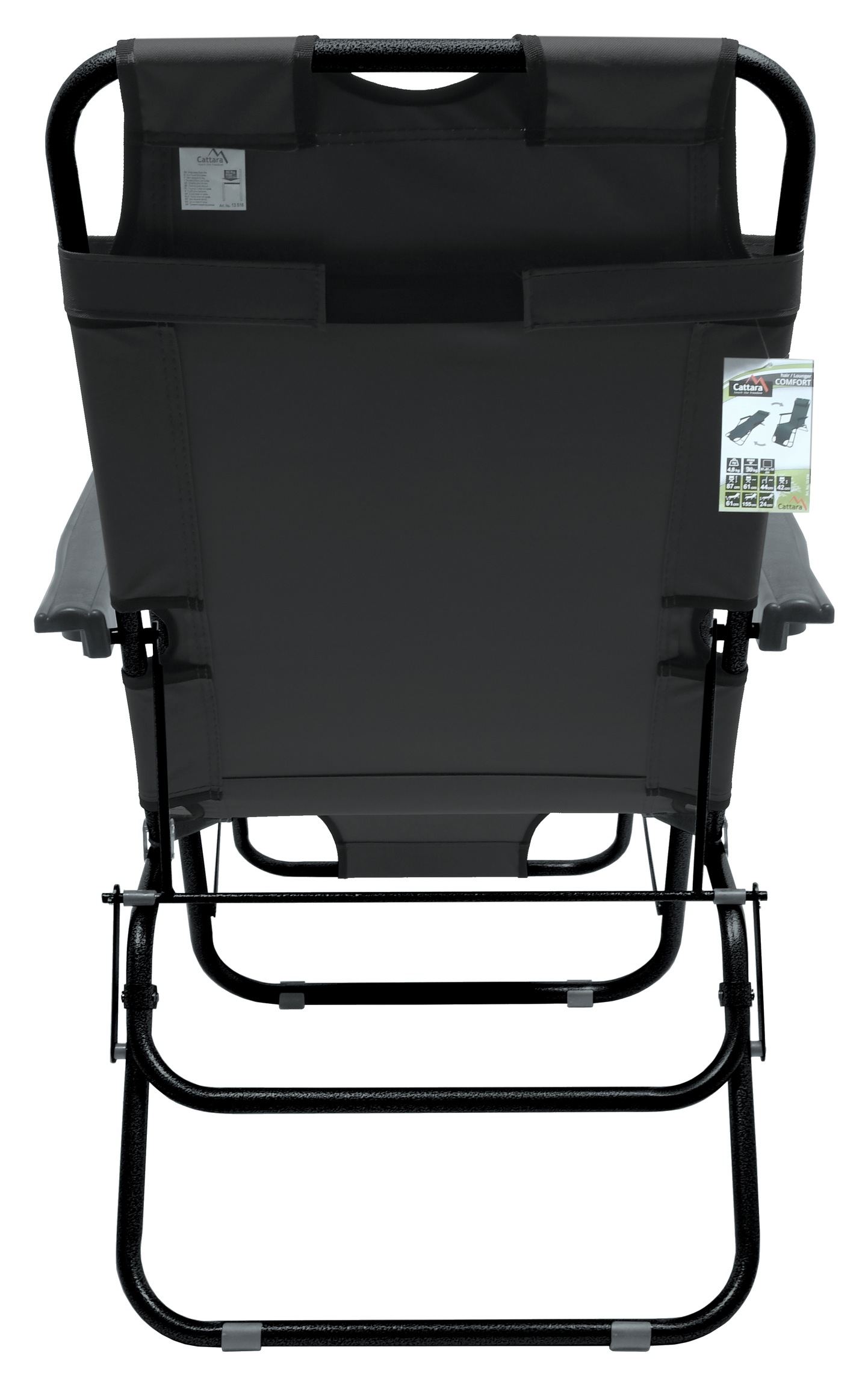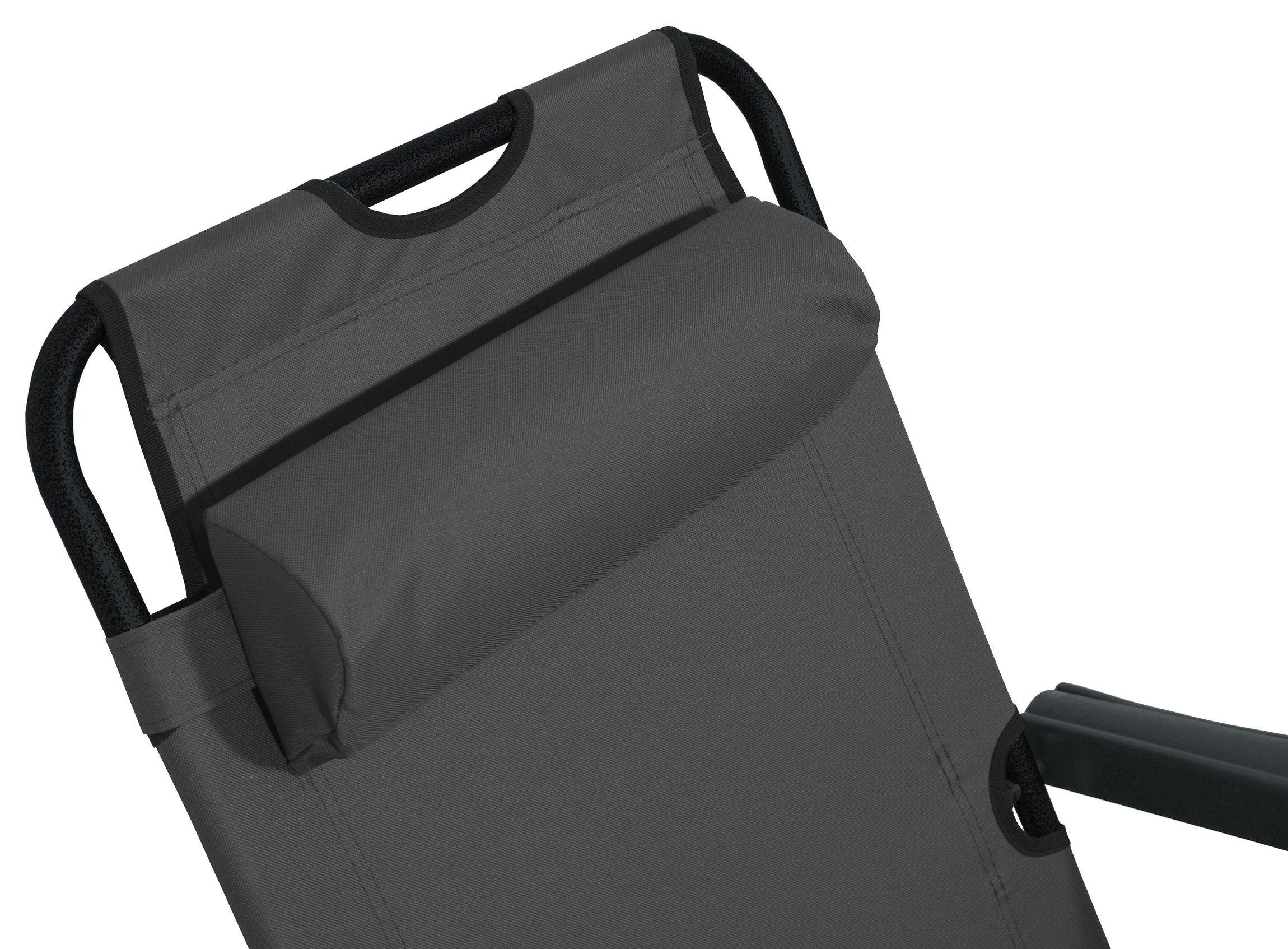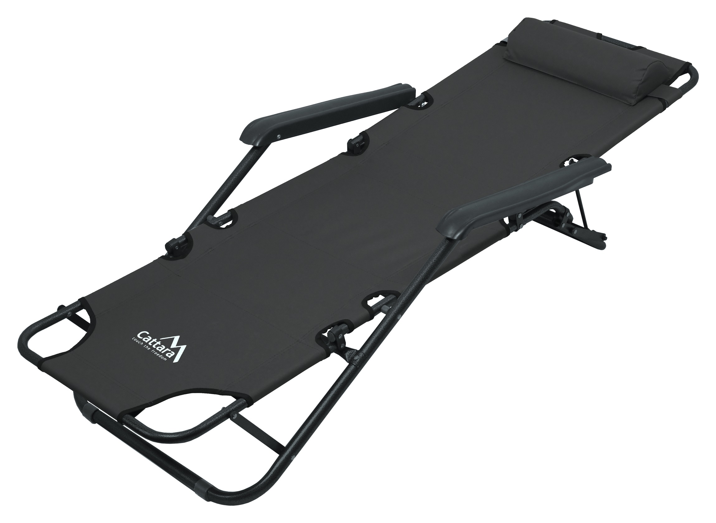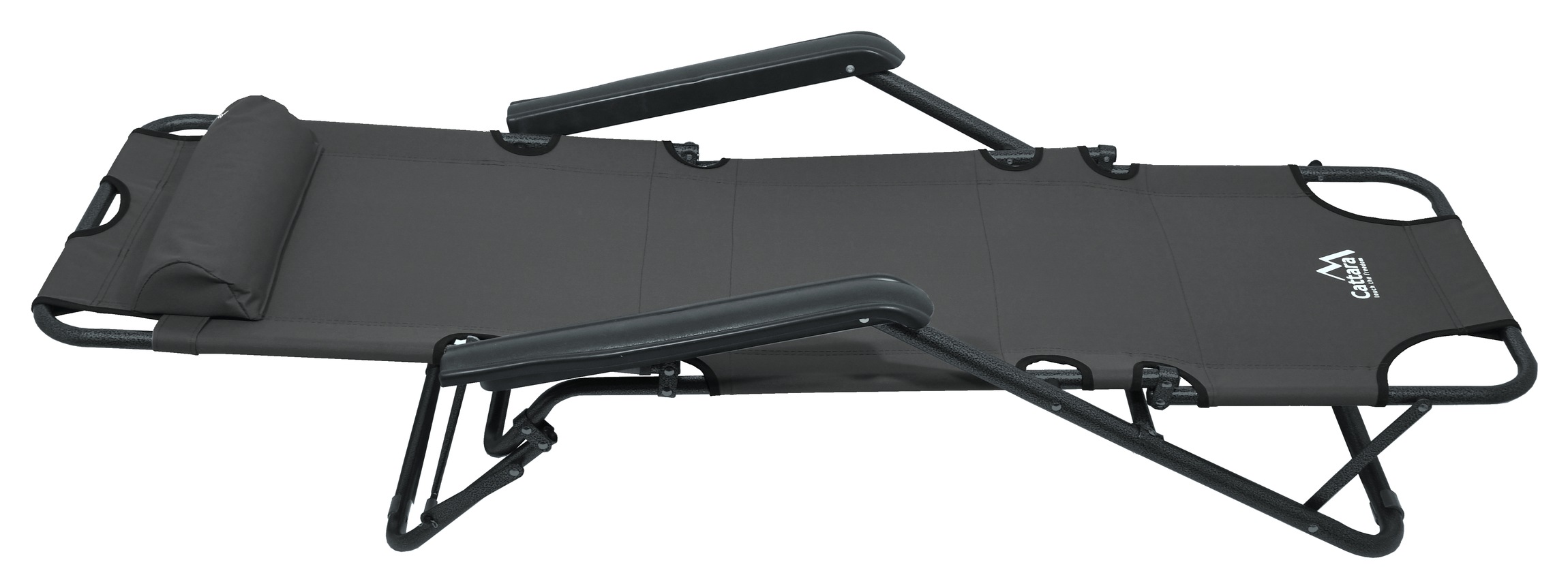 Leżanko można używać w tradycyjny sposób, ale można je również złożyć w postać krzesła wędkarskiego, które doceni każdy miłośnik outdooru. Leżanko wyposażone jest w regulowaną wysokość poduszki oraz podłokietniki dla maksymalnego komfortu.