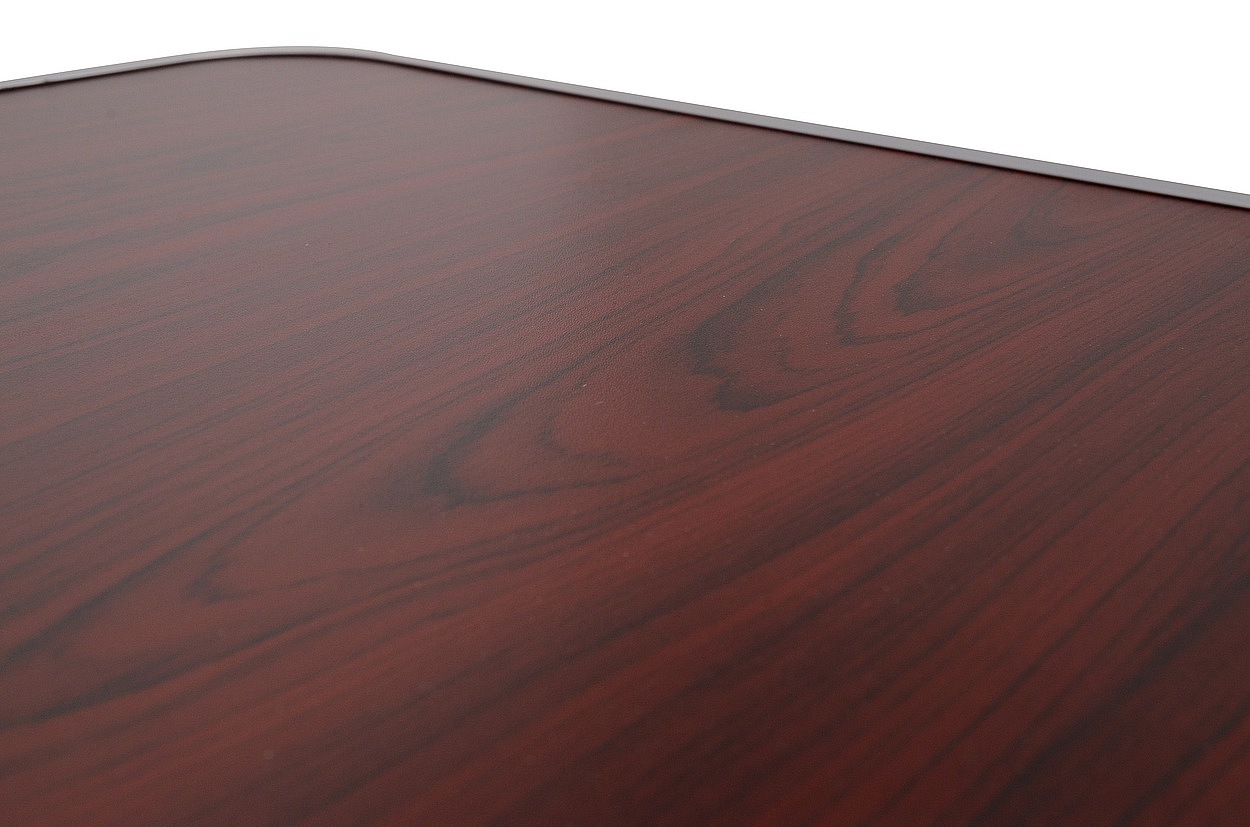 Stół Balaton to wysokiej jakości stół z aluminium, z równą i solidną powierzchnią, z wzorem imitującym ciemne drewno.
