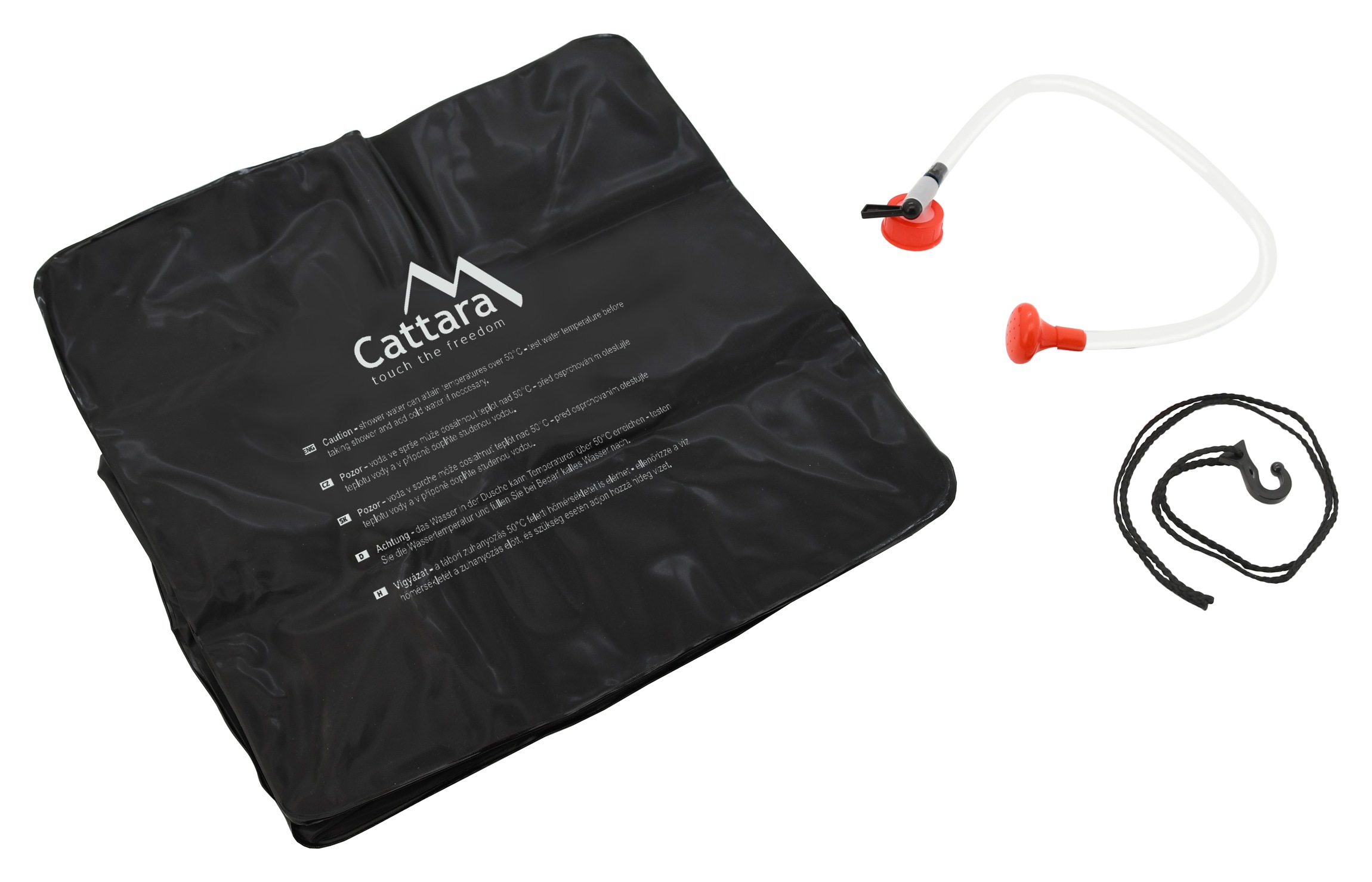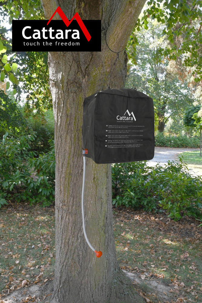 Wykonany z wytrzymałego PVC w kolorze czarnym, z wymiarami zewnętrznymi napełnionego worka 40 x 40 x 26 cm. Worek został zaprojektowany tak, aby po zawieszeniu w nasłonecznionym miejscu woda mogła się podgrzać do przyjemnego prysznica.
