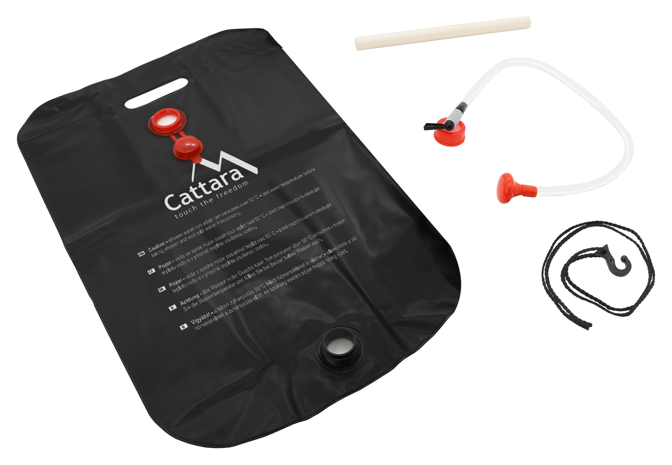 Wykonany z wytrzymałego PVC w kolorze czarnym, o zewnętrznych wymiarach napełnionego worka 60 x 40 x 16 cm. Worek zaprojektowany jest tak, aby po zawieszeniu w słonecznym miejscu woda się podgrzała do przyjemnego prysznica.