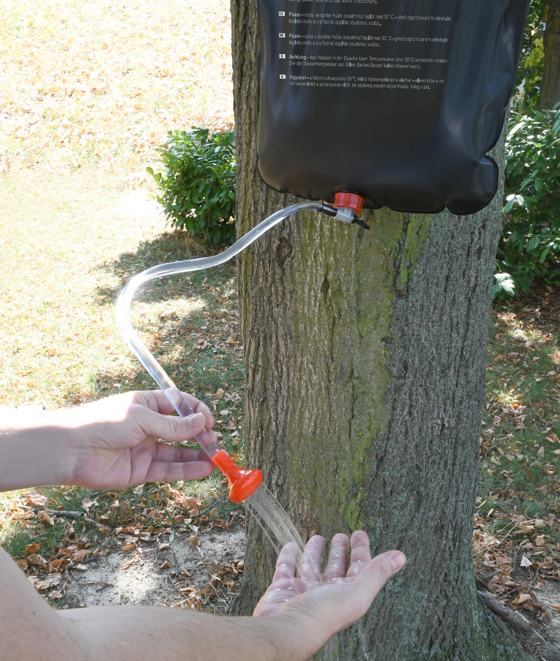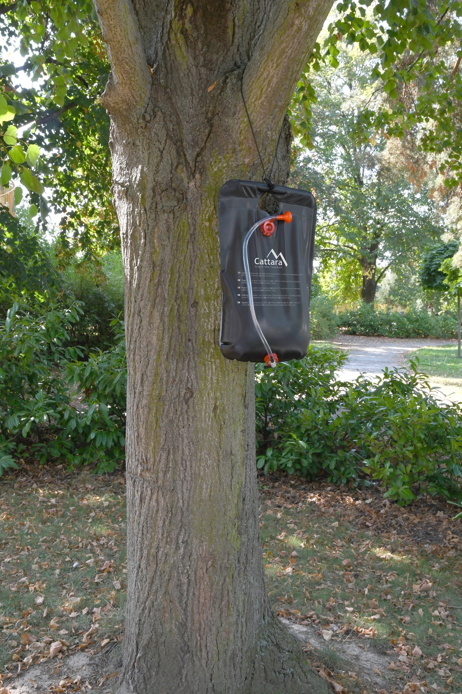 Kempingowy prysznic o pojemności 20 l, odpowiedni do zawieszenia na drzewie, w kempingu i innych miejscach.