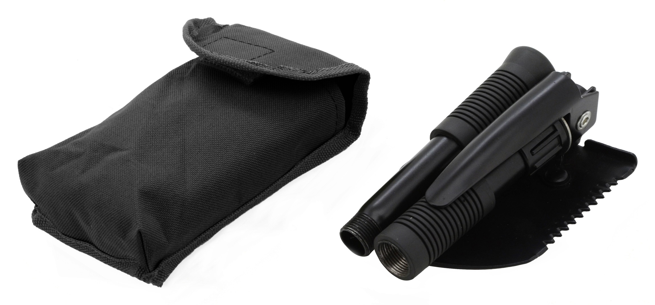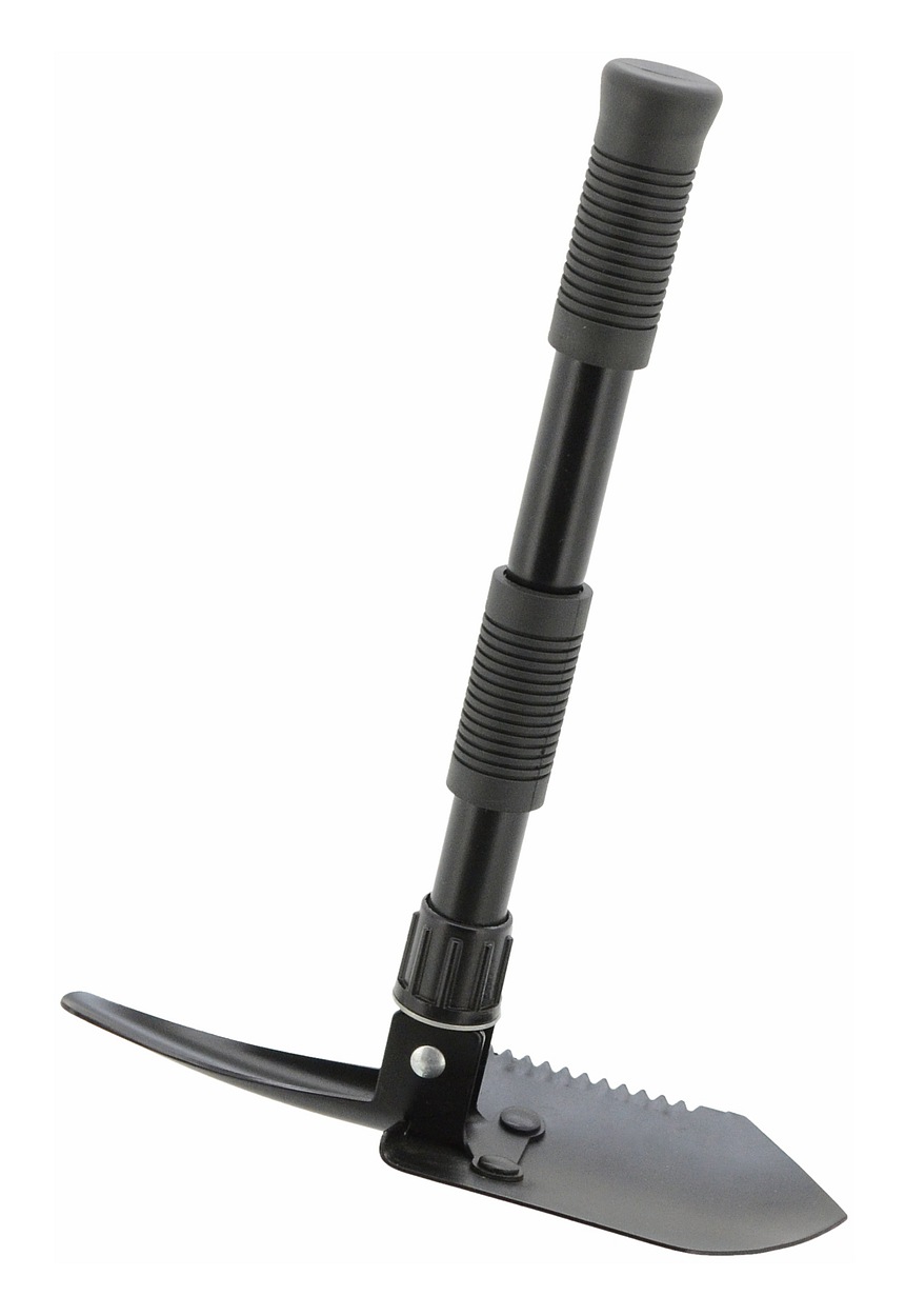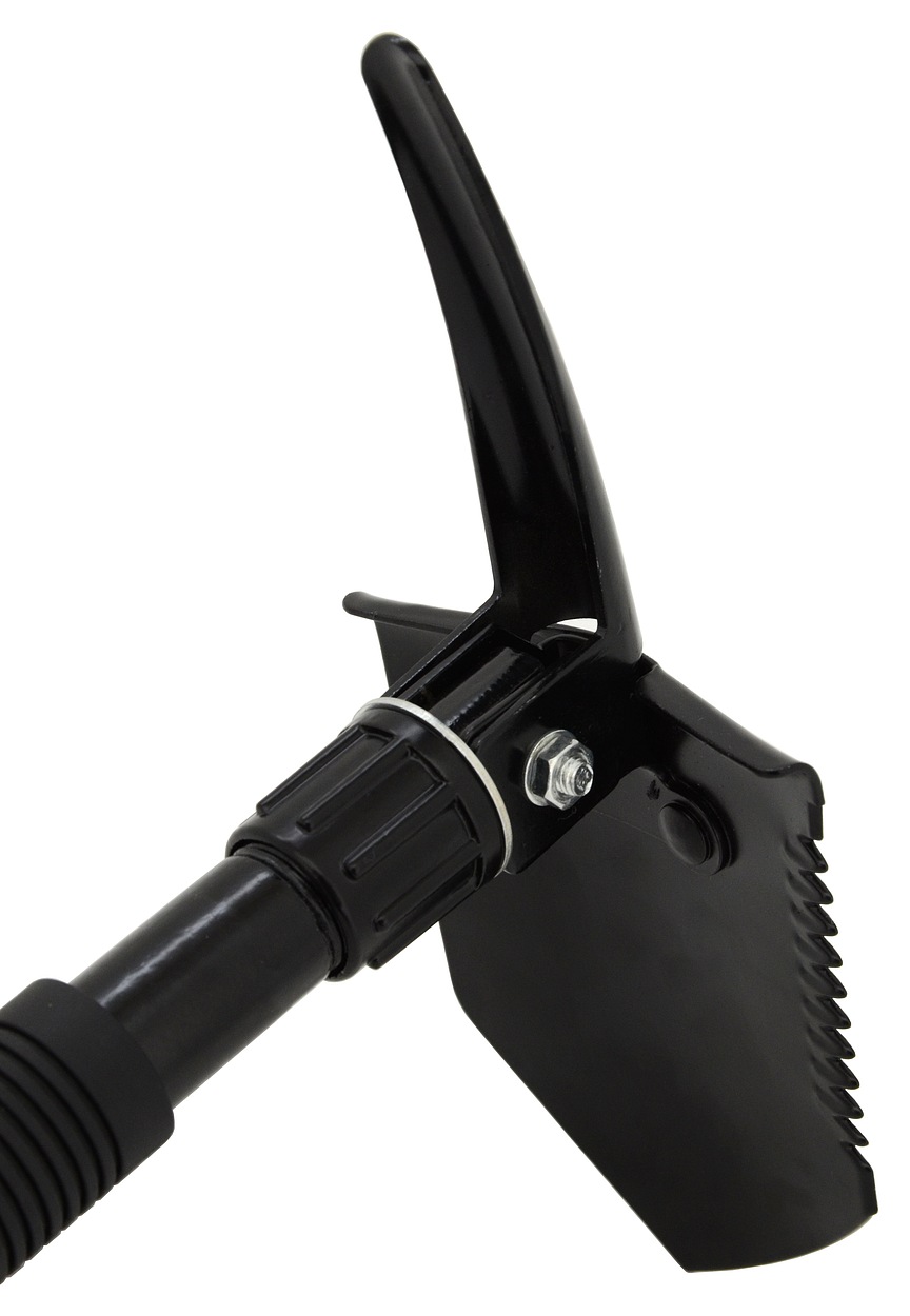 Łopatkę można używać tradycyjnie jako łopatę, ale ostrze jest również wyposażone w piłę i można je złożyć także jako motykę.
