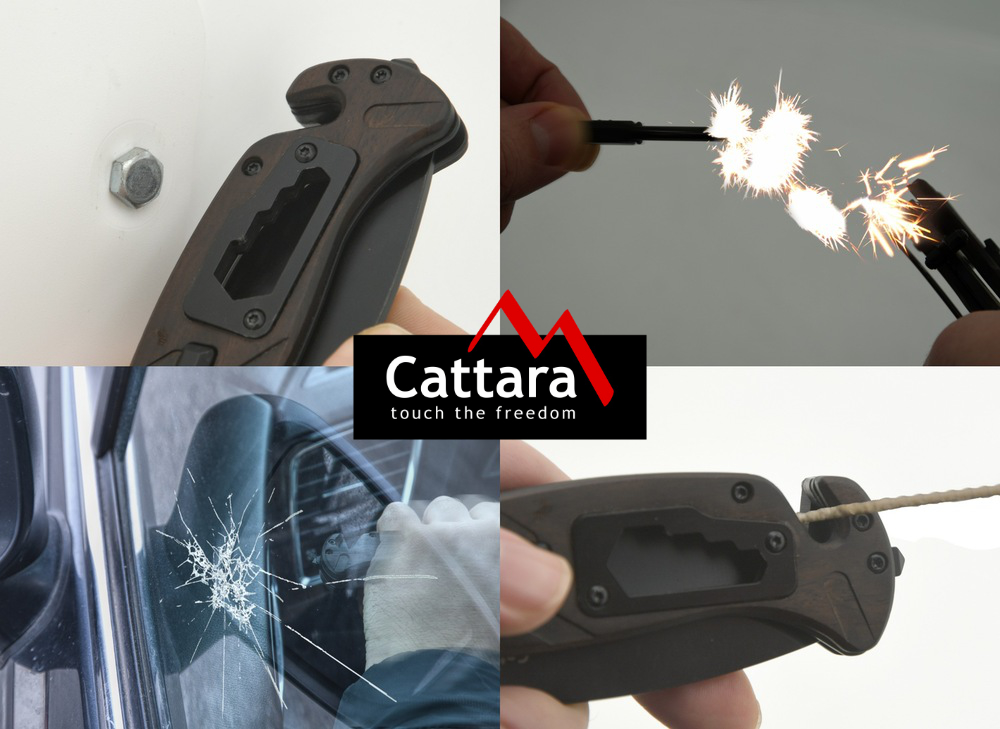 Nóż wyposażony jest w dodatkowe akcesoria do różnych zastosowań. Na przedniej stronie rękojeści znajduje się klucz do nakrętek 6/8/10/12 mm, z tyłu znajduje się krzesiwo, które wraz z ząbkowaną górną częścią ostrza wykorzystasz jako krzesiwo lub gwizdek. Tylną część rękojeści noża wyposażono w klips do przypięcia noża, np. do pasa. Przednia część noża wyposażona jest w ostrze do przecięcia liny o szerokości około 6 mm, a z tyłu korpusu znajduje się klin do awaryjnego rozbicia okna.