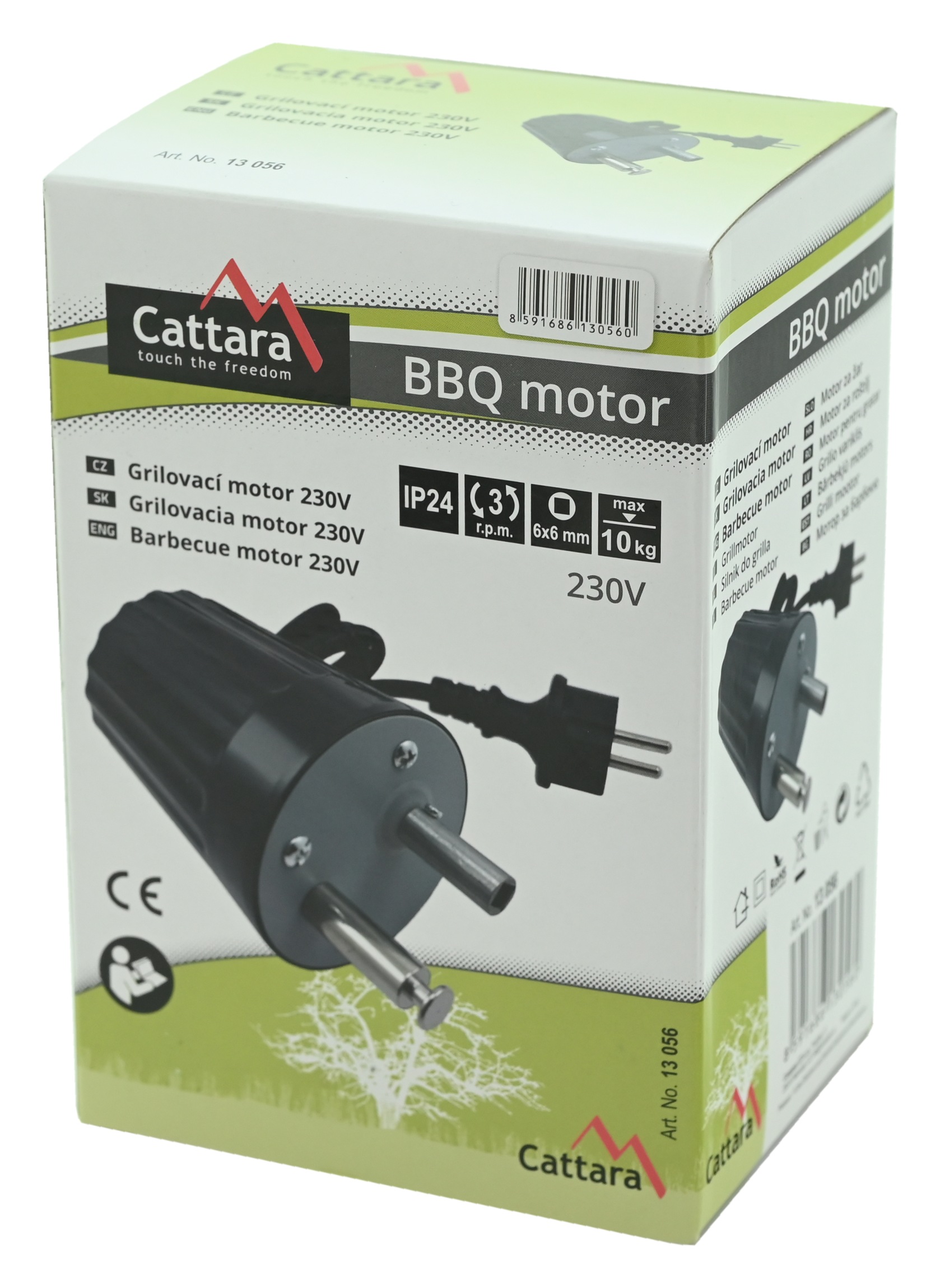 Silnik jest przeznaczony do stosowania z rożnem o kwadratowym mocowaniu o przekroju 6x6 mm. Silnik oferuje maksymalne obciążenie do 10 kg mięsa przy prędkości obrotów 3 obroty na minutę.
