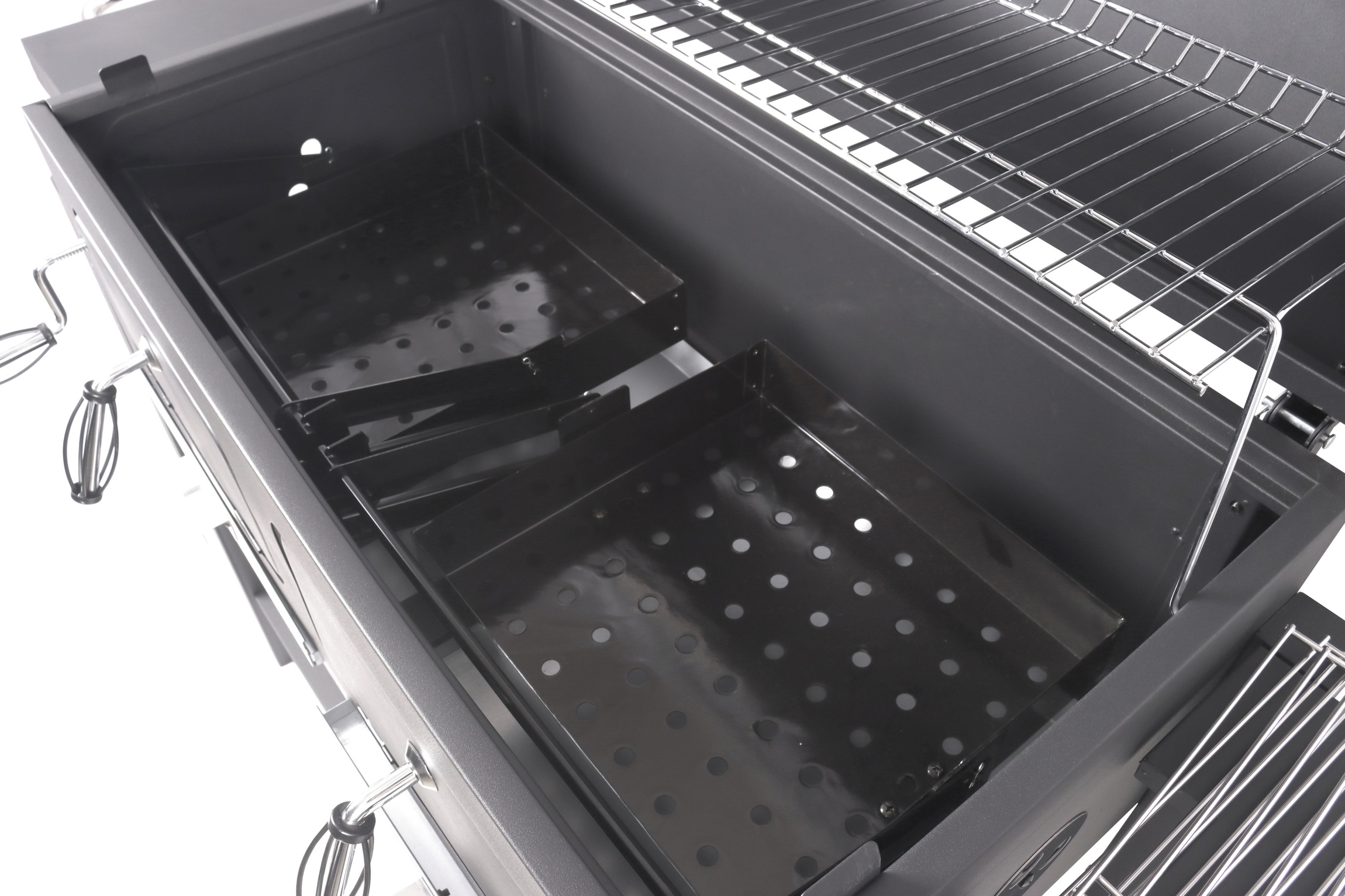 Inną zaletą grilla są ruszty węglowe z regulowaną wysokością, dzięki czemu przestrzeń grillowania można regulować za pomocą mechanizmów znajdujących się z przodu, w zależności od wymagań dla poszczególnych potraw. Drzwi z przodu grilla ułatwiają dopełnianie węgla. Do łatwiejszego czyszczenia przeznaczone są wysuwane szuflady na popiół w najniższej części grilla.