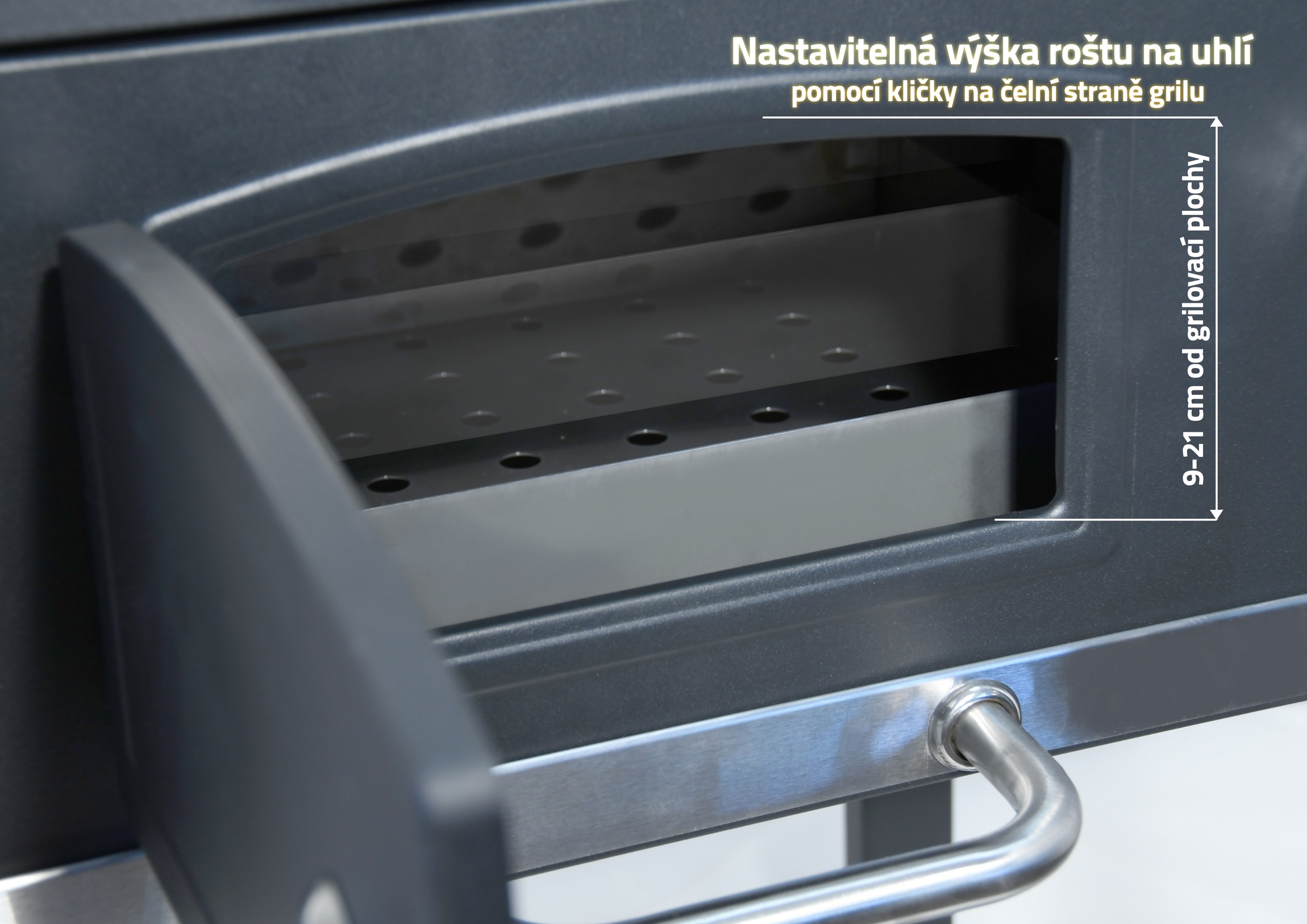 Konstrukcja ze stali została pokryta grubą czarną farbą. Uchwyty i elementy sterujące mają odpowiednie rozmiary do wygodnego uchwytu, zapewniając precyzyjne sterowanie. Dwustronna regulacja wentylacji doskonale pasuje do konstrukcji. Kolejną zaletą jest ruszt na węgiel z regulowaną wysokością 9-21 cm od przestrzeni grilla, z pomocą pokrętła z przodu. Drzwiczki na przedniej stronie grilla ułatwiają dosypywanie węgla.