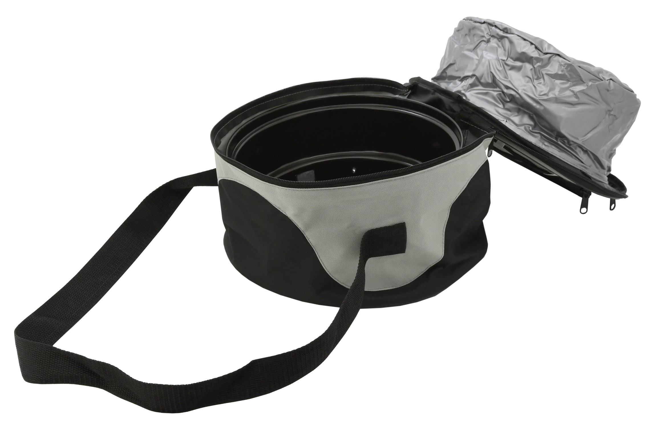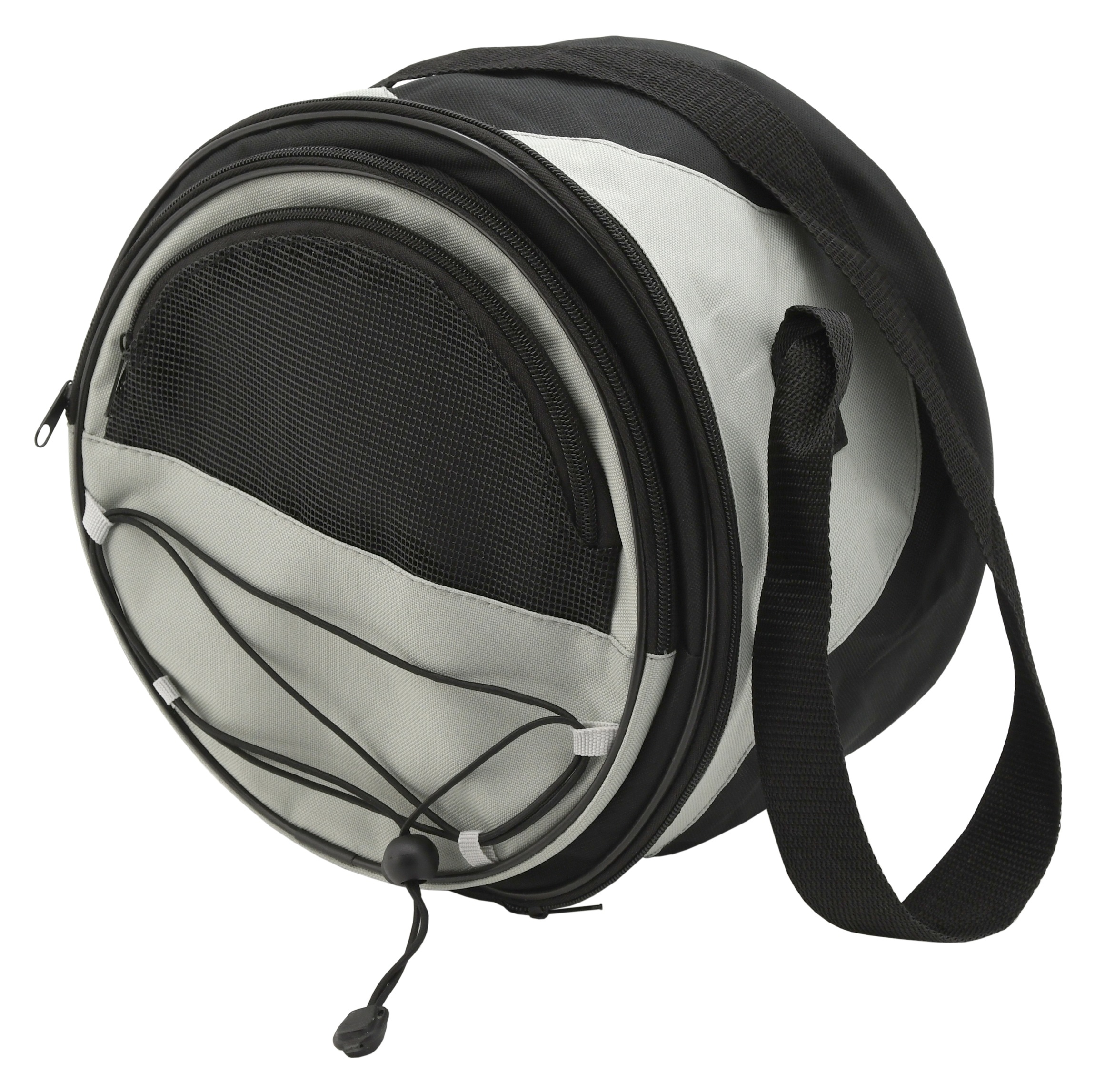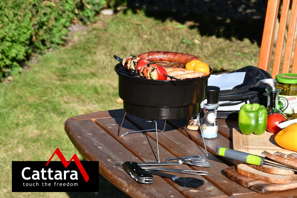 Dla łatwego przenoszenia złożony grill umieszczony jest w praktycznej torbie z paskiem. Torba wyposażona jest w kieszeń izotermiczną na żywność oraz małą siateczkową kieszonkę na drobiazgi. Wymiary transportowe wynoszą 30 x 17 x 30 cm.